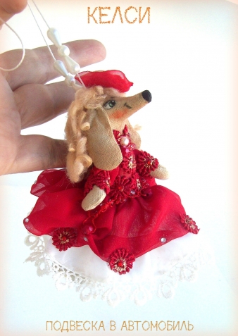 Заказ - маленькая такса - подвеска в автомобиль в красных тонах. Вкусно пахнет кофе с корицей и ванилью)