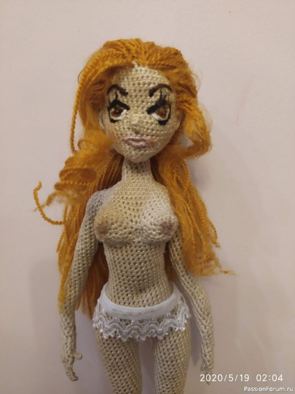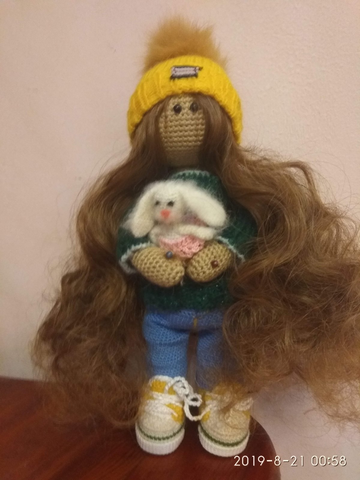 каркасная куколка крючком с собачкой из шерсти. МК от Марии Смолиной