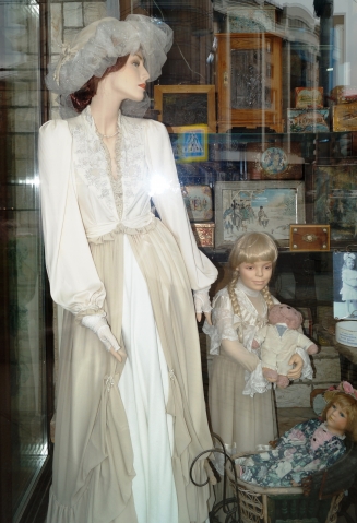 Это лишь небольшая часть вещей, выставленных в витрине магазина. Я с удовольствием показала бы больше ( а там есть на что посмотреть, уж поверьте), но качественно сфотографировать не получилось. Стекло нещадно бликует.
