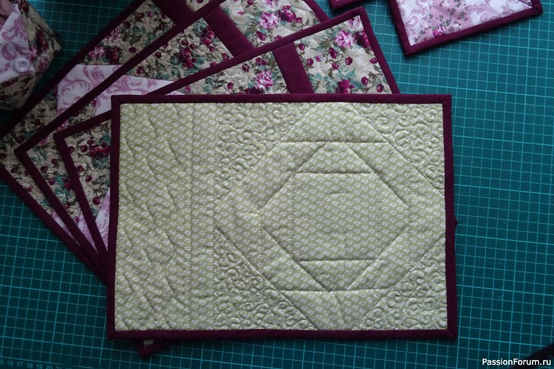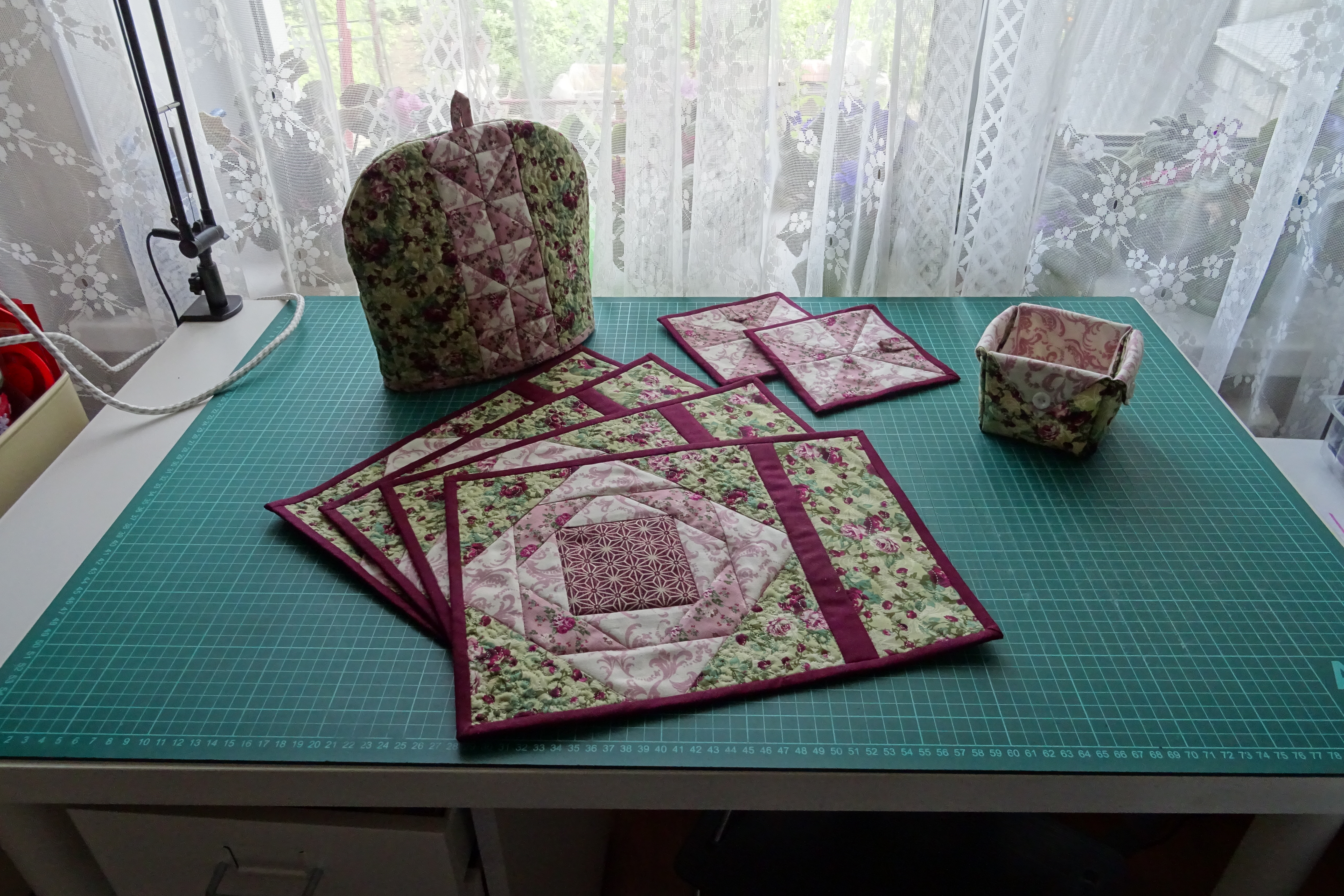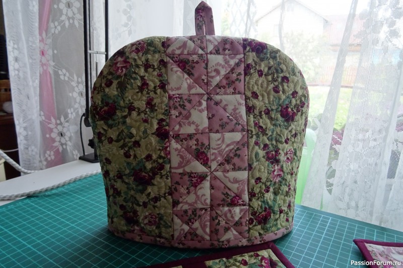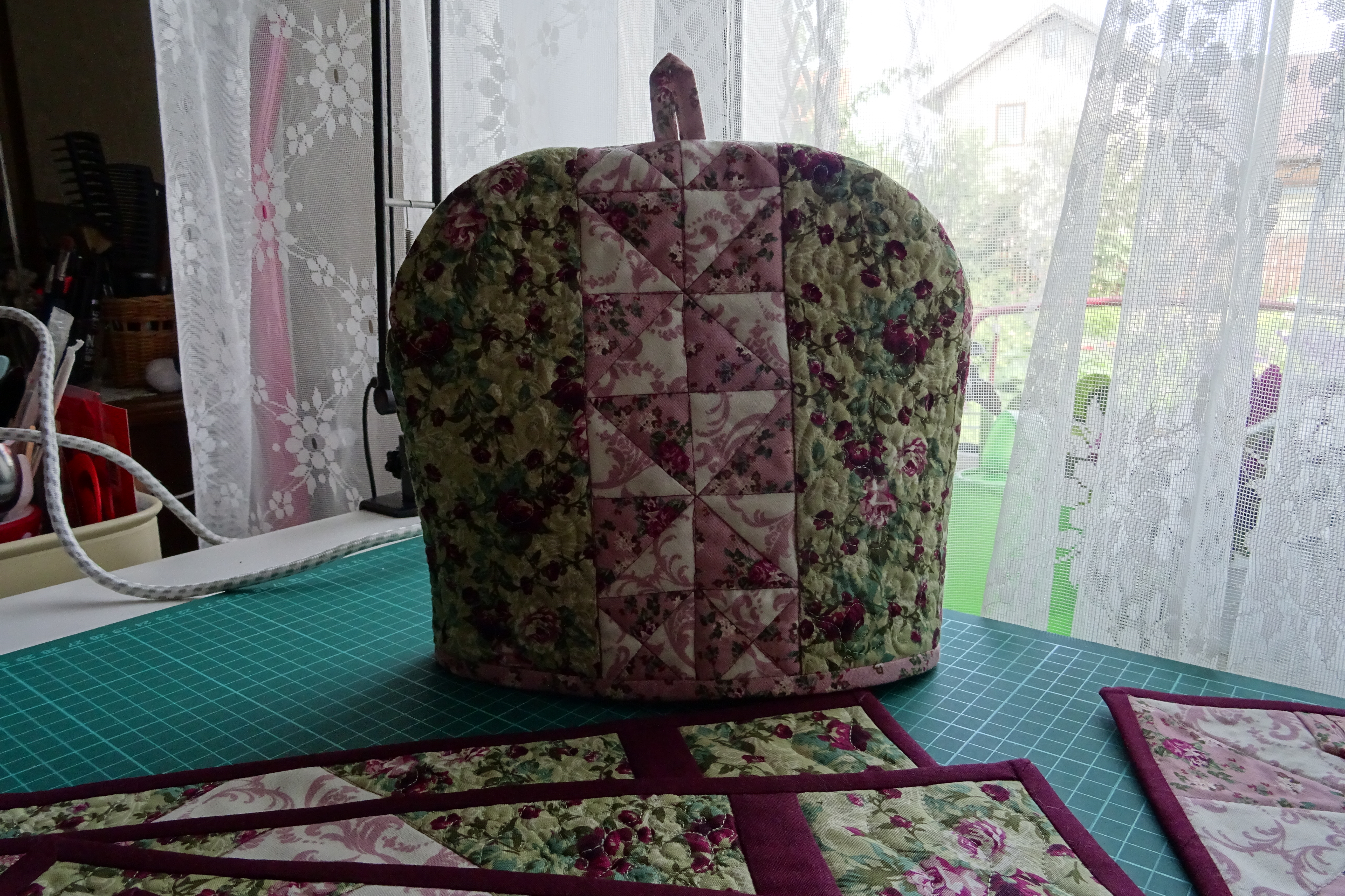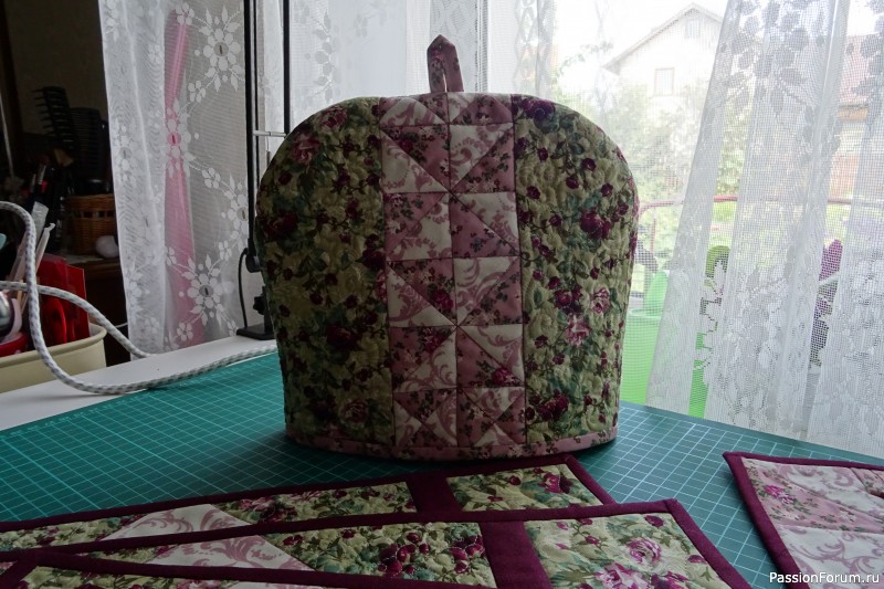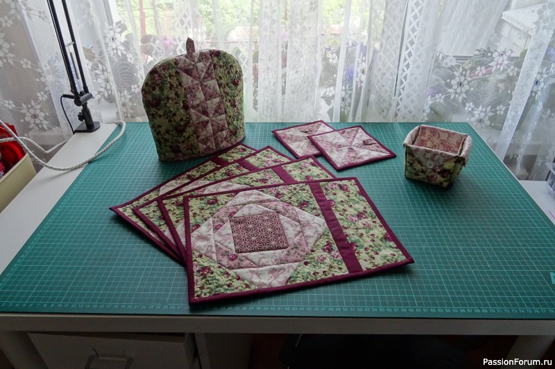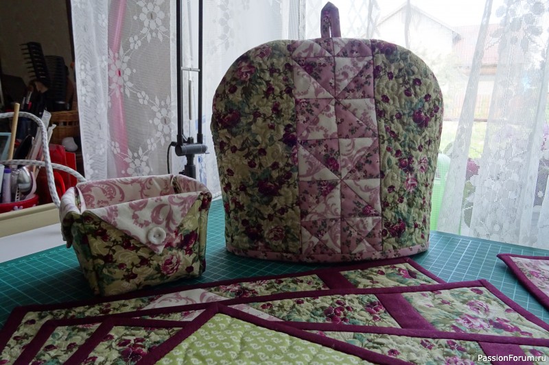 Сегодня закончила свою новую работу: комплект на кухню. Шила его из американской ткани,коллекция тканей называется "Бабушкин сад" Комплект состоит из 4-х ланчматов 34х24 см, 2-х прихваток, грелки на чайник, и небольшой коробочки-салфетницы. Приятного просмотра.