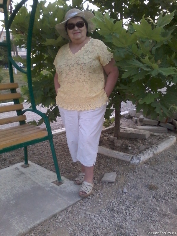 Какая нежная кофточка, очень нравится филейная вязка и на вас очень хорошо смотрится!