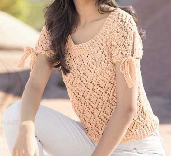 Ажурный пуловер абрикосового цвета. Описание и схема