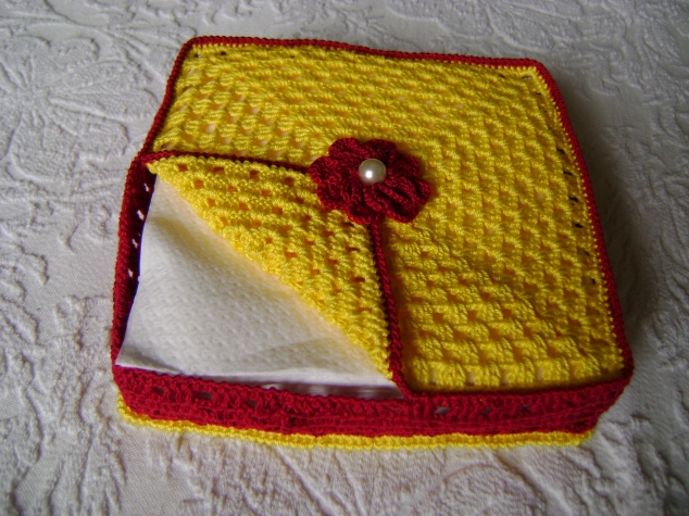 Немного поменяла цвет-получилась осенняя салфетка и в придачу-салфетница