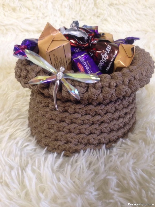 Корзинка из полиэфирного шнура (остатки от ковра).