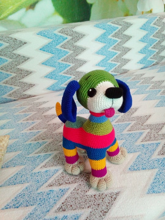 Очень радужный щенок! Такой миленький и улыбчивый.