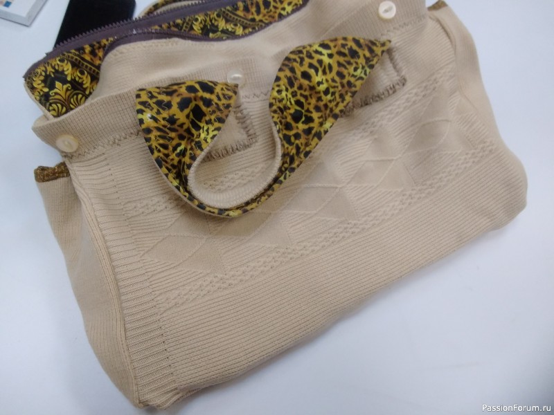 Сразу и не узнала, кто пишет. Ай да молодца. Я еще до такого не додумалась. Пока только из папиного джемпера юбку себе сшила. Носки, береты и наволочки. А сумка? Это грандиозно.