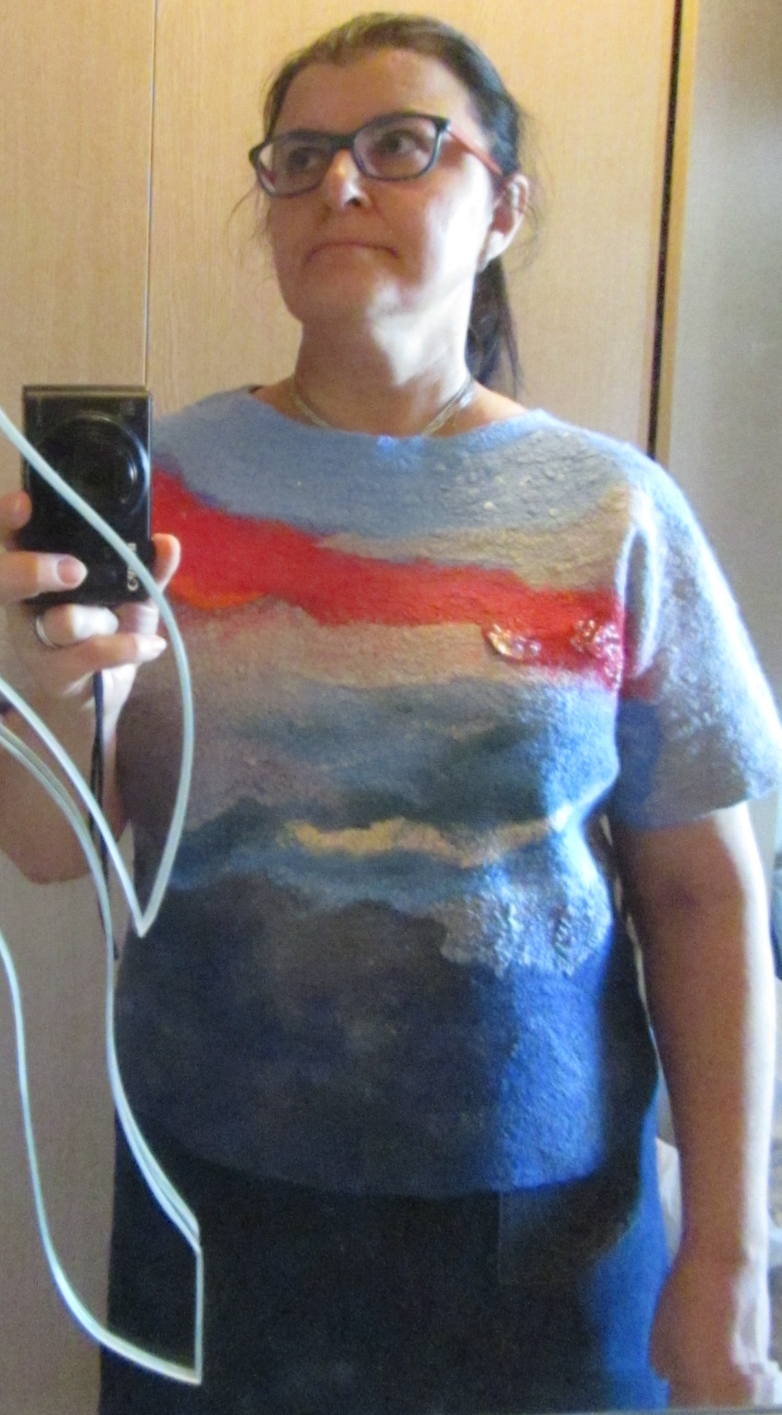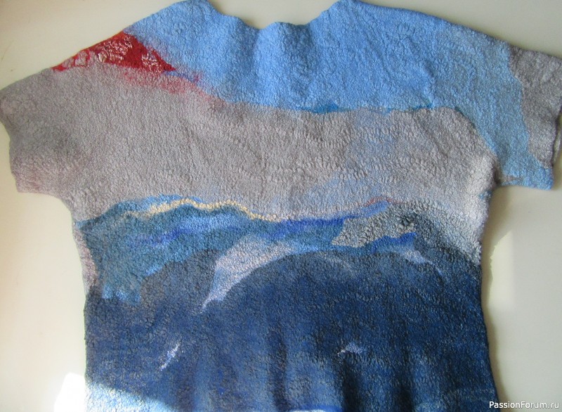 Хотела на себе показать,не совсем удачное фото,но в общем то понятно,что вышло. Вот.На этом пока валять кофточки прекращаю,перехожу к малым формам. Почему? А у меня большой стол сломался! Да- да,довалялась!Но это мне напоминание- пора валять шляпки,чем сегодня и хочу заняться. Все таки они меньше места занимают,чем кофточки- жилетки!