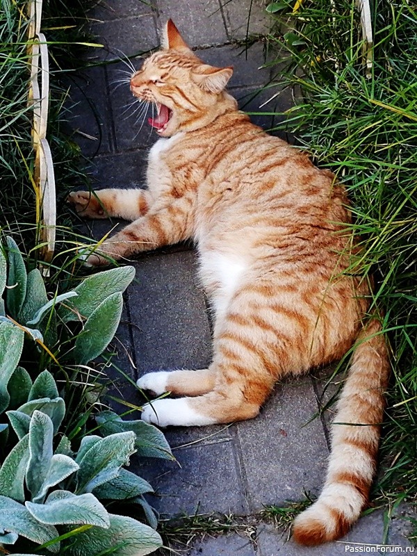 Очень ярко, живо, уютно в Вашем саду, уважаемая Галина! Кот — просто красавец, явный хозяин всего этого великолепия!