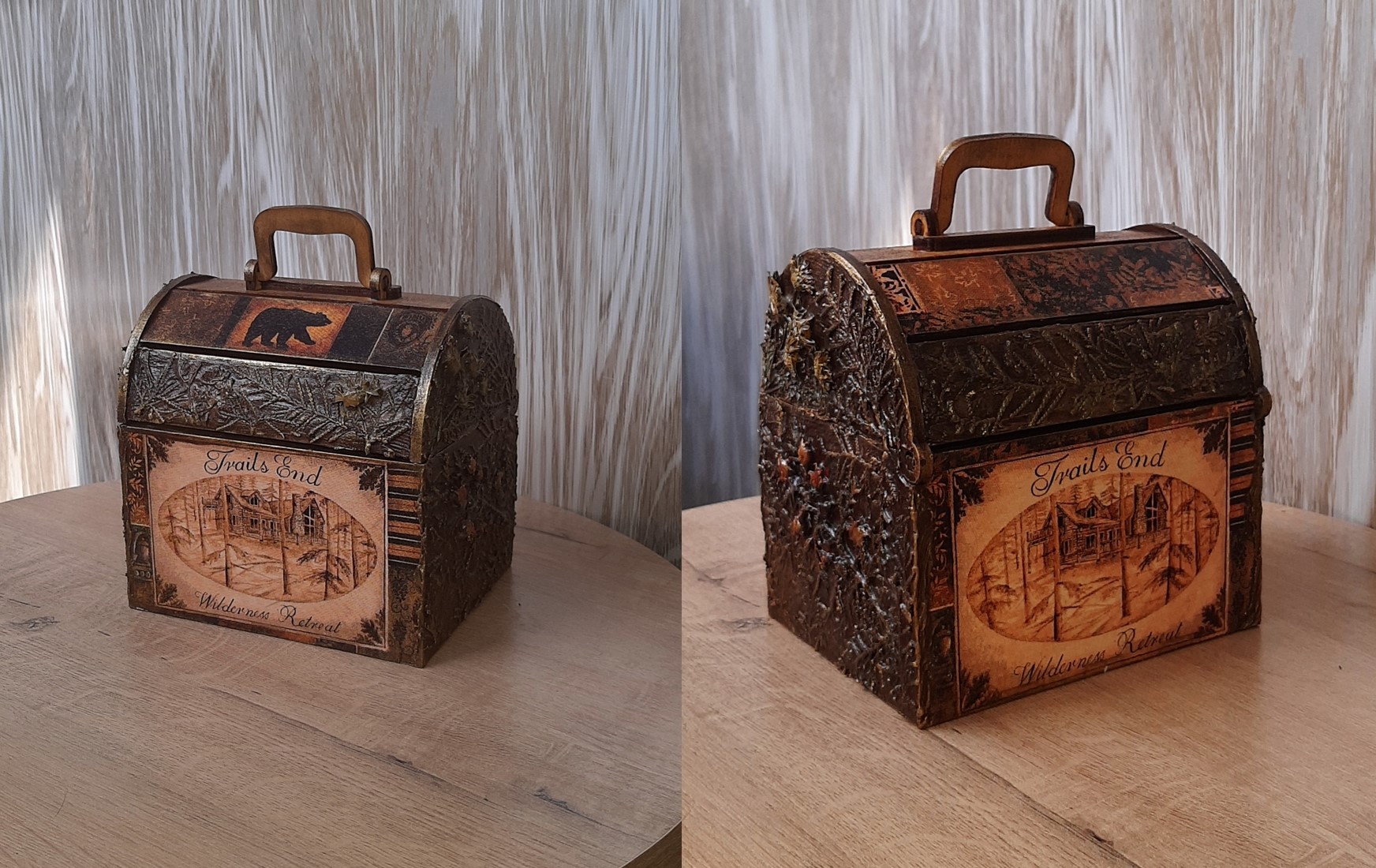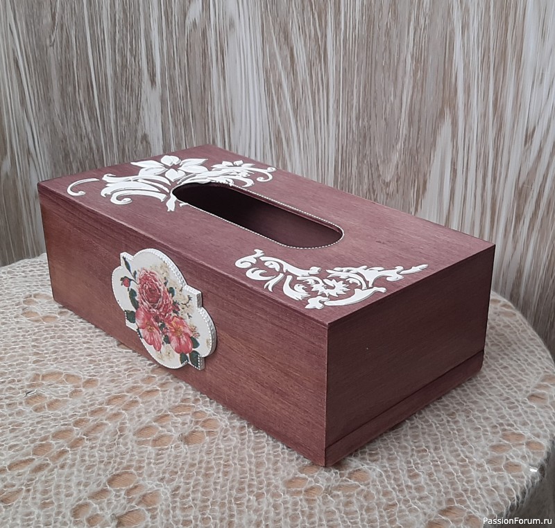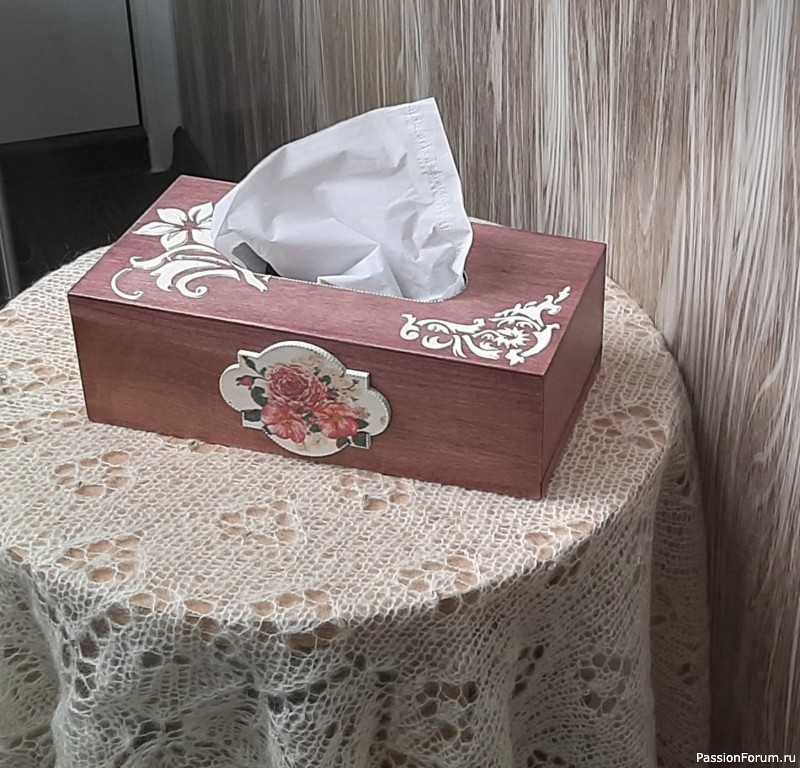Очень красивые работы! Сундучок совершенно покорил еще на конкурсе. И очень хороша салфетница — при небольшом декоре смотрится очень изысканно!