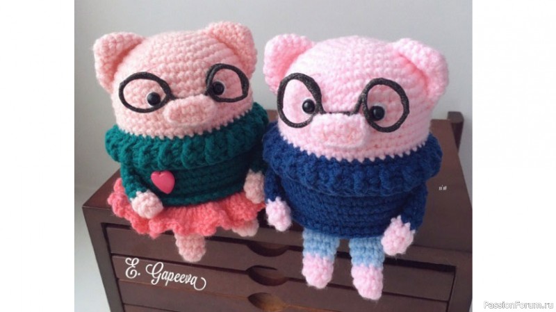 Хрюшки Пигфред и Пигги крючком. МК Екатерины Галеевой