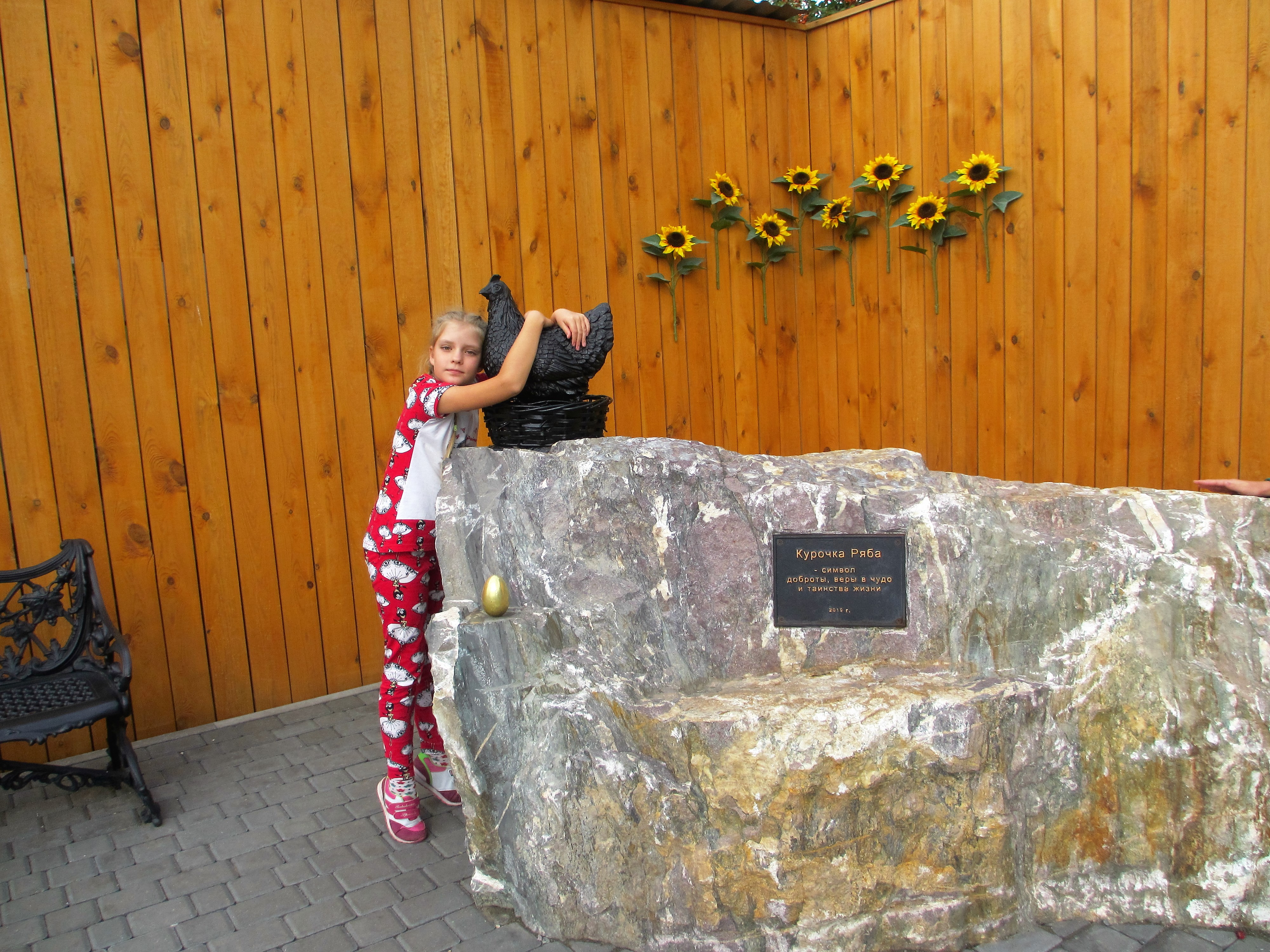 В зоопарке установили памятник Курочке Рябе. Мы с девочками тоже бросили по монетке в гнездо.