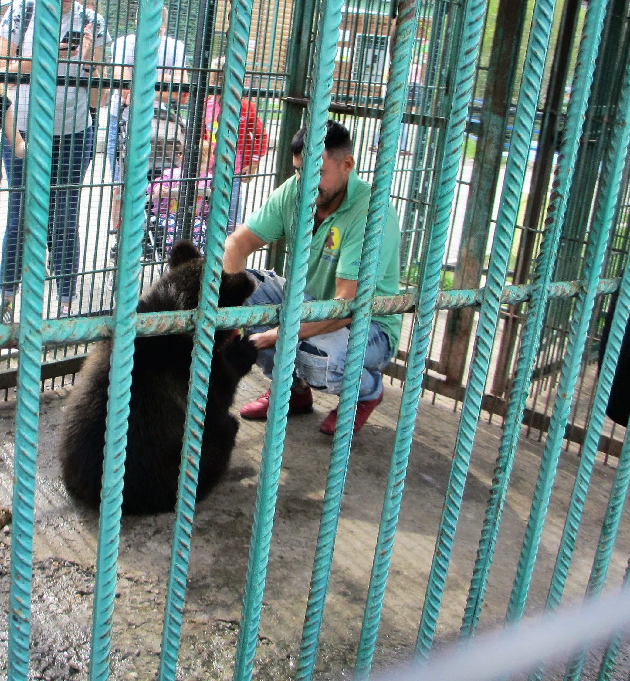 В прошлом году посчастливилось побывать на мероприятии "Ночь в зоопарке". Посмотрели на кормление зверей. А в этом году как раз было вечернее кормление. Вот медвежонка по кличке Чарыш (его жители нашли в окрестностях Чарышского района и передали в зоопарк) кормят арбузом. А он предпочитает пососать пальцы работника! Все дети были в восторге!
