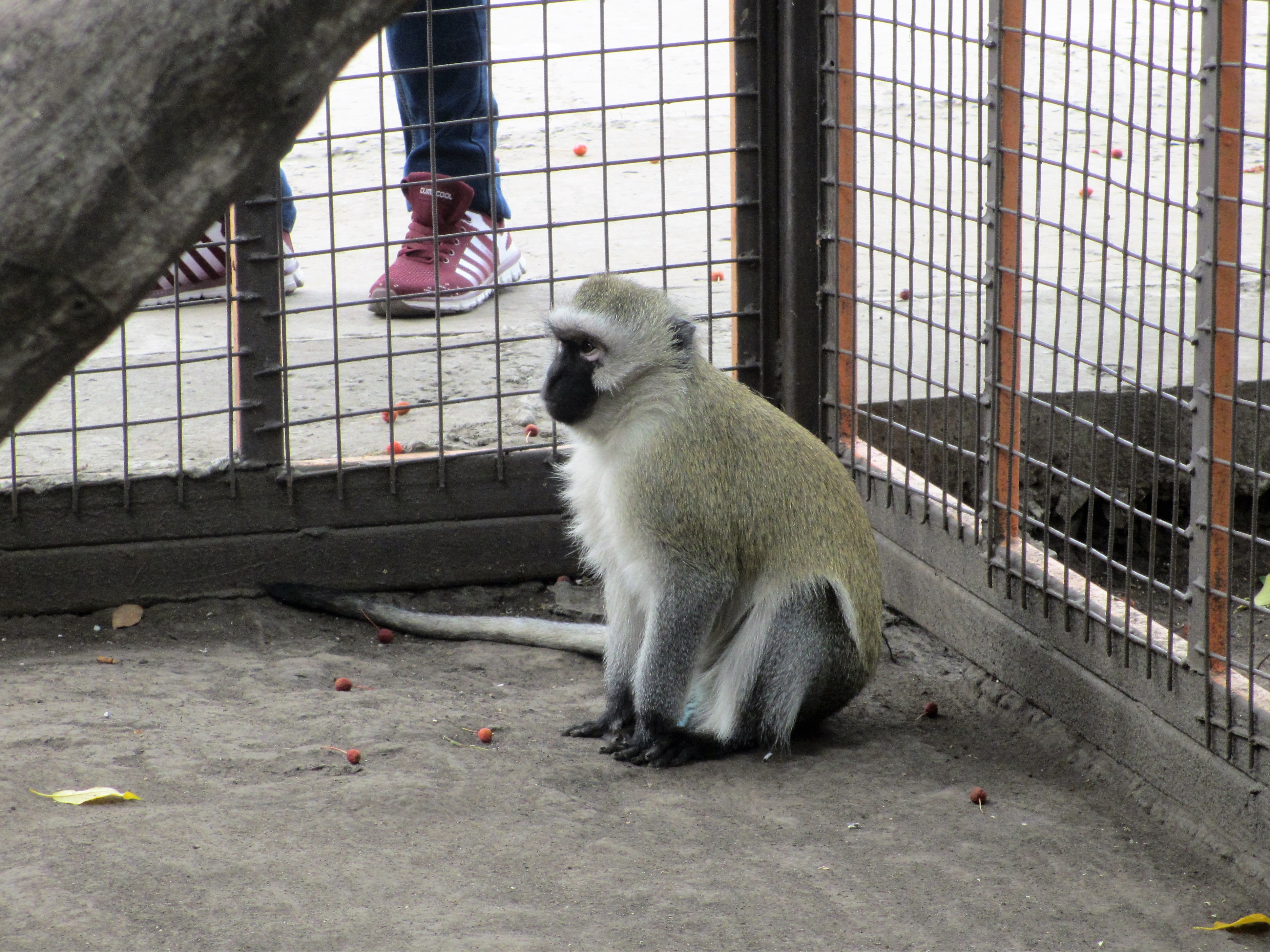 Обезьяны сидят за стеклом. Самец как идол. Он не суетится, степенен.
