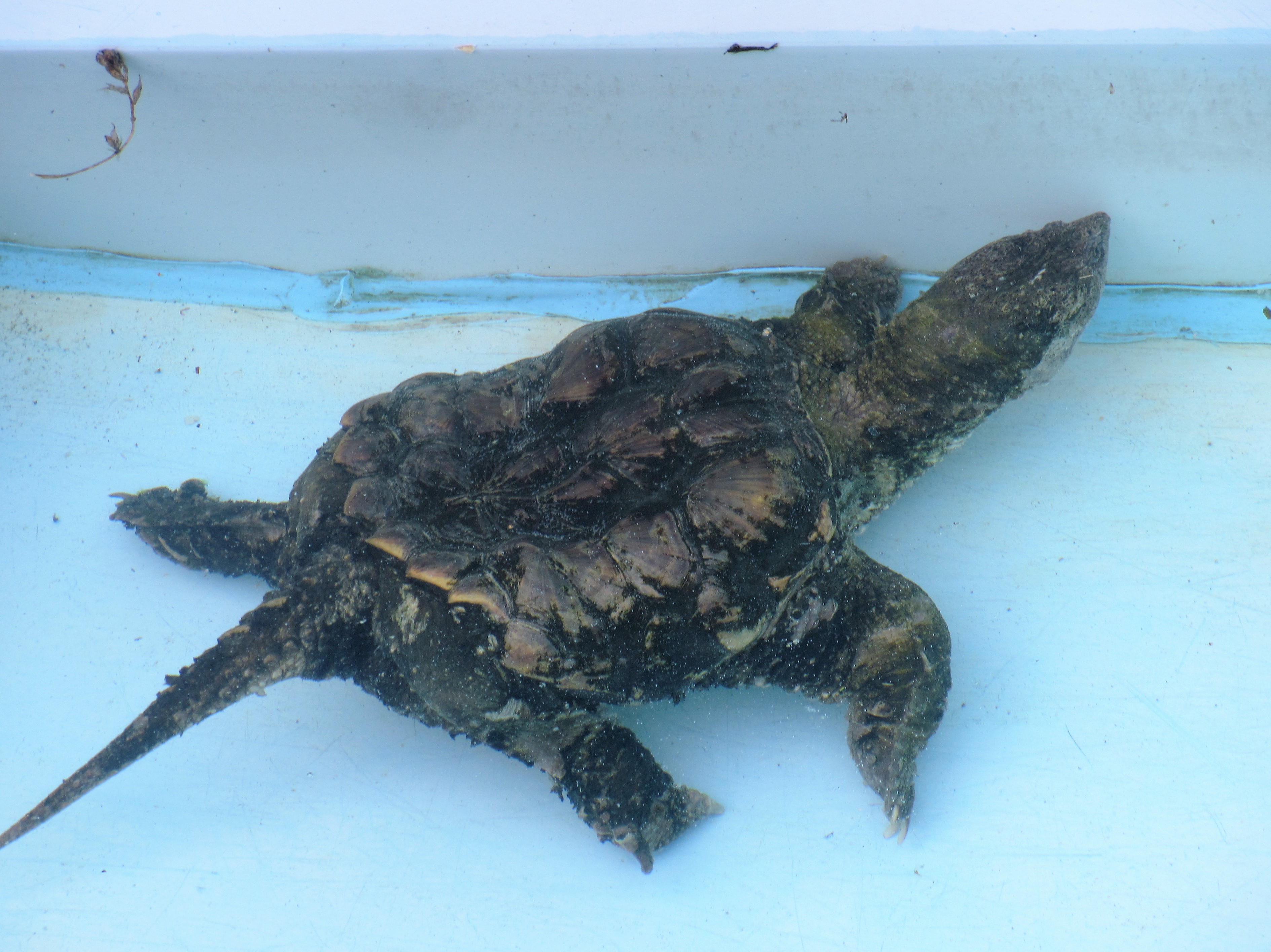 Навестили старейшую черепаху. Она вся замшелая, панцирь деформировался. Степенно плавала, а молодняк суетился в другом вольере.