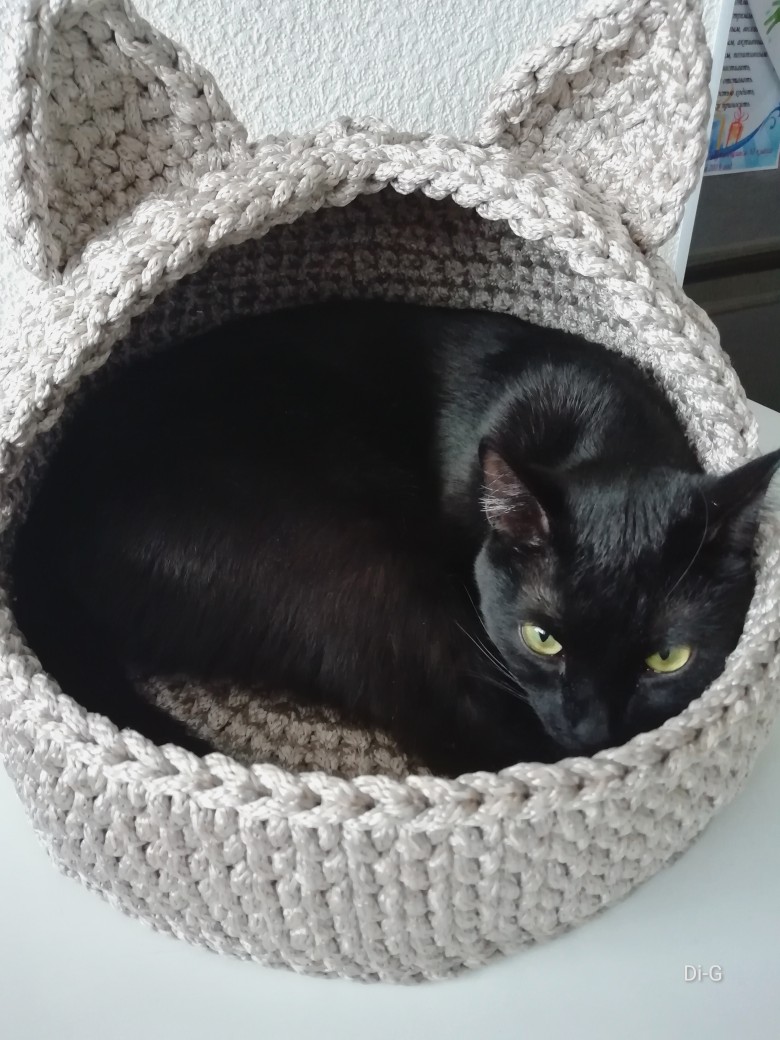 Уютный домик из наших шнуров СуперЭконом для своей мурлыки умелыми ручками связала Динара г. Магнитогорск.