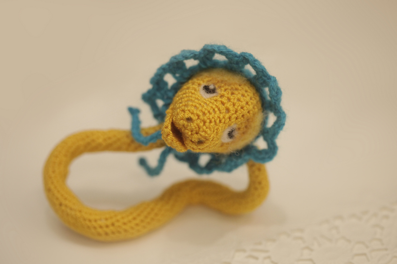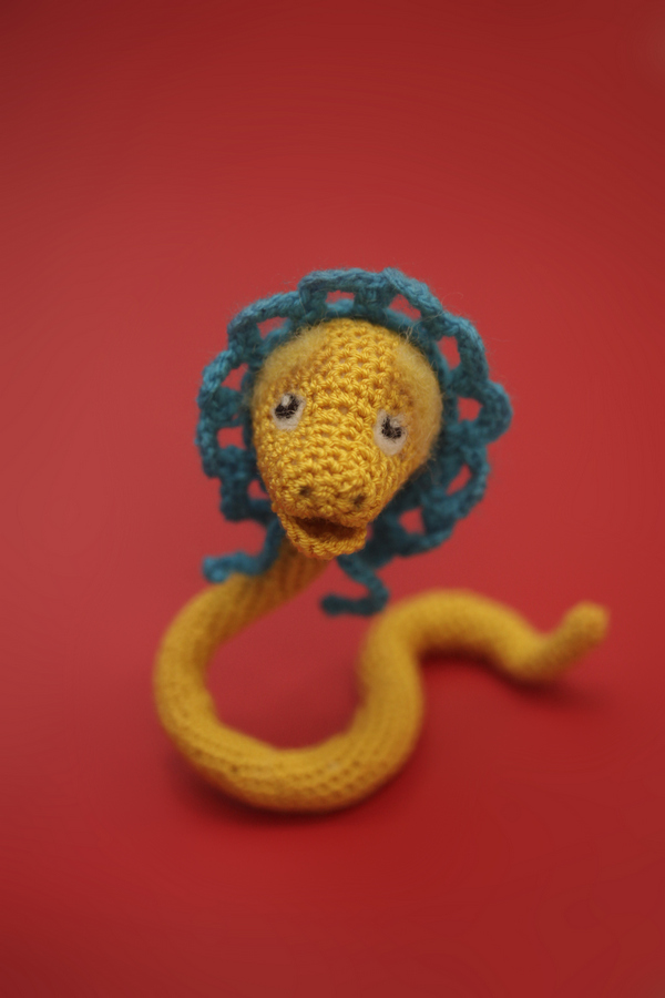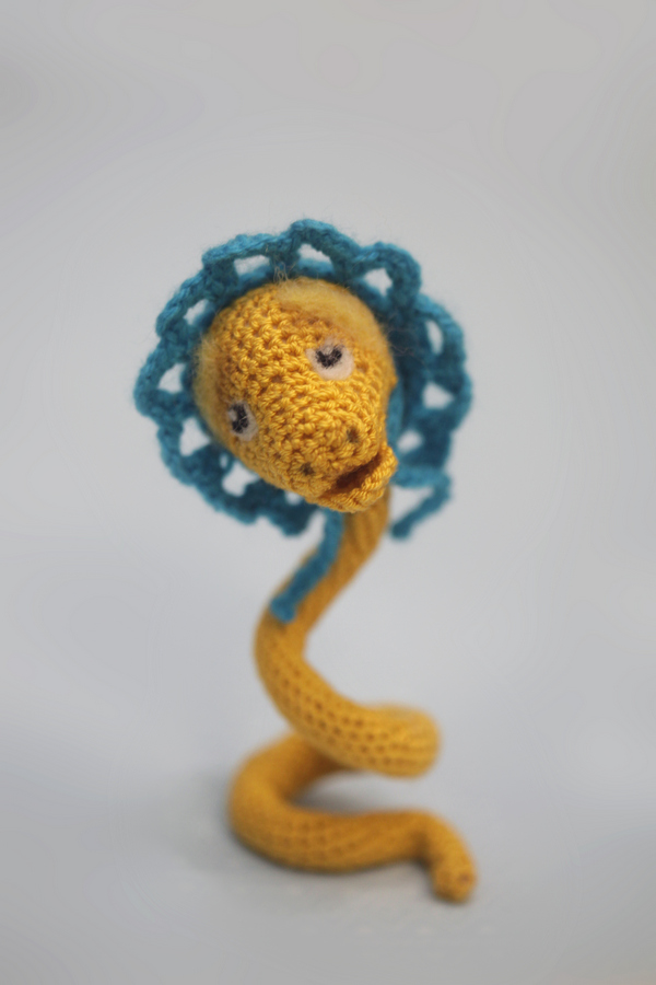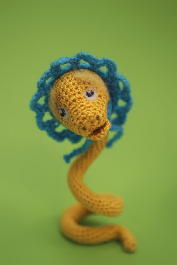 Удавчик связан крючком, на каркасе из проволоки, длина - 23 см.