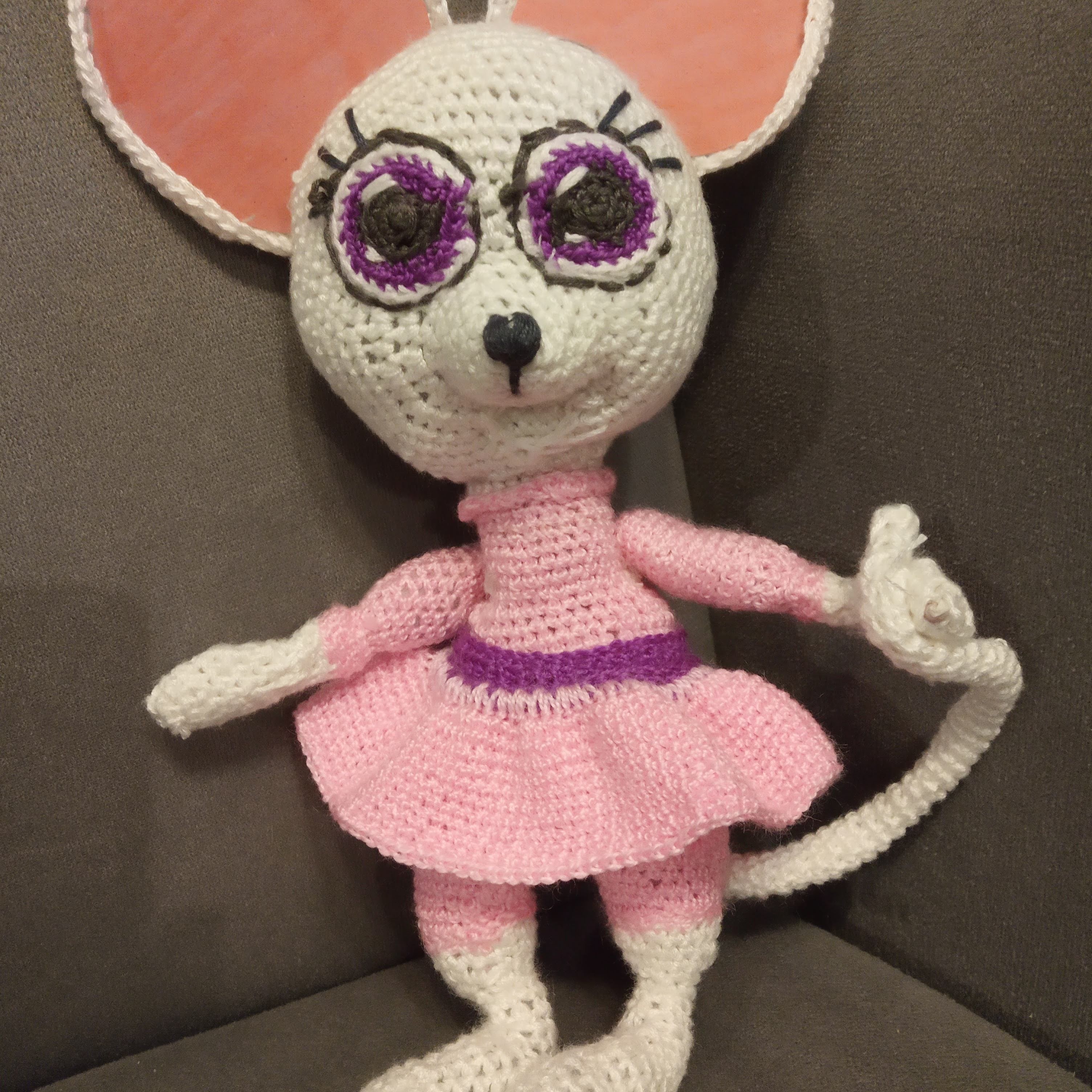 Символом года была Мышь, я нашла мастер класс по вязанию забавной девочки мышки в платье. Размером вышла около 30 см. Использовалась проволока для устойчивости ножек и сгибаемости хвостика