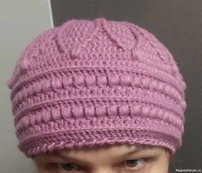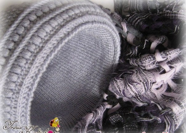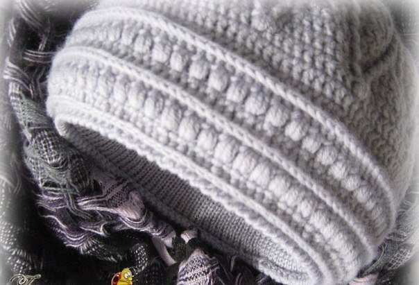 Тёплая шапочка крючком с подкладкой спицами. МК
