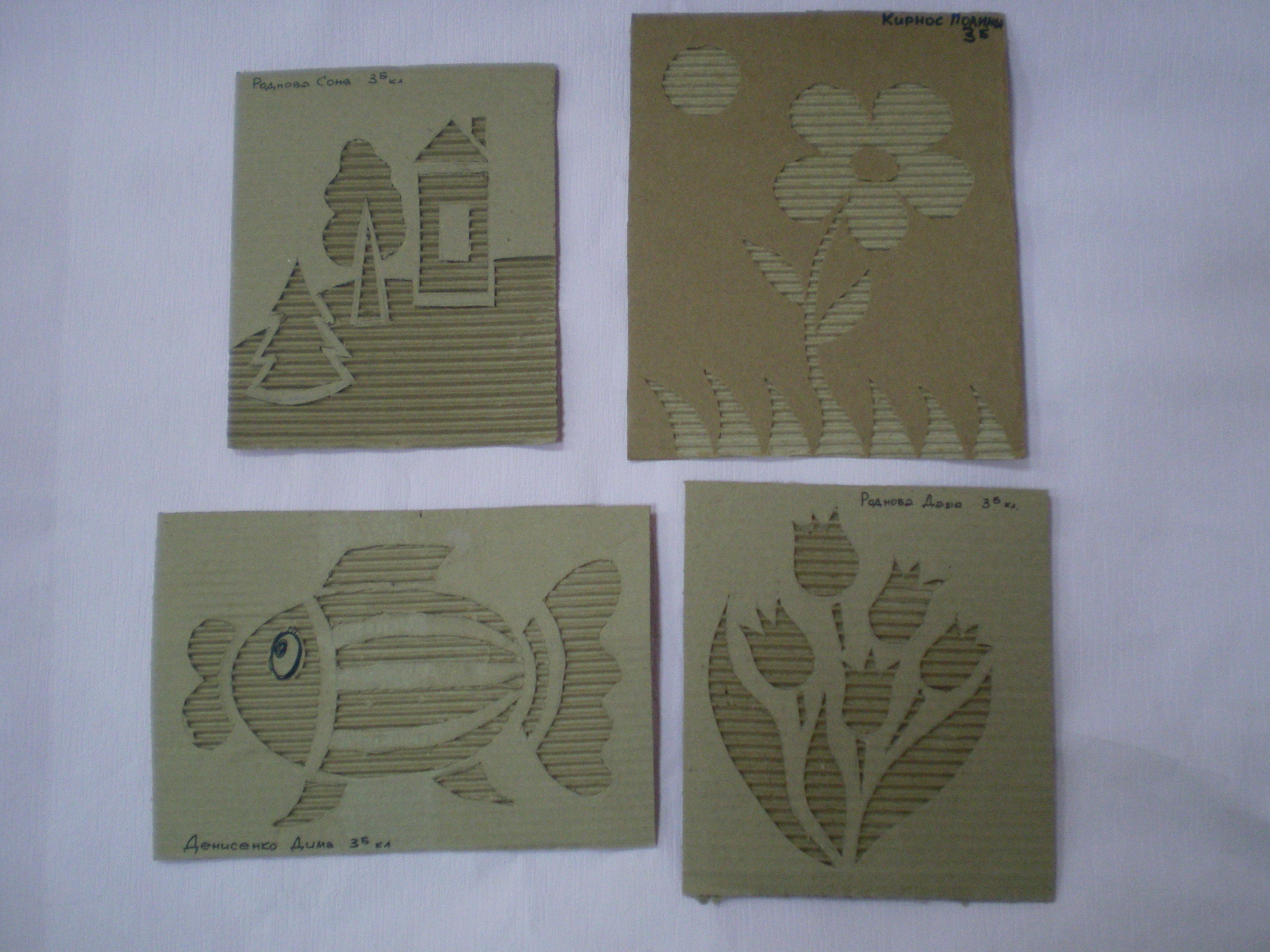Инициатива наказуема...Хотела на уроке заняться гофрокартоном только с одним классом, оказалось, что многие тоже хотят. Предлагаю Вашему вниманию некоторые работы моих учеников 3б класса. Как делать я уже рассказывала, теперь только похвастушки.