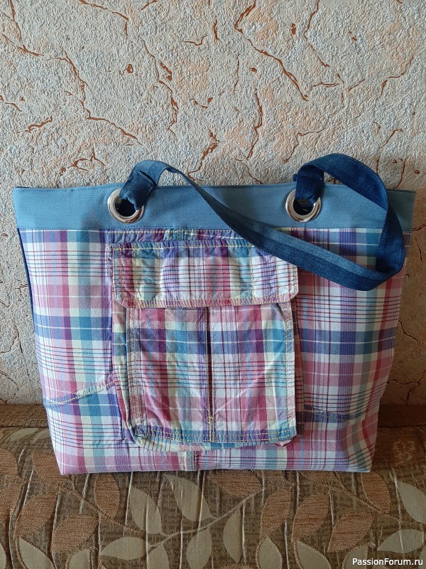 Хочу сказать, что все сумки сшиты из старых вещей которые отдали мне знакомые. Затраты были минимальны (нитки, дублерин, люверсы).