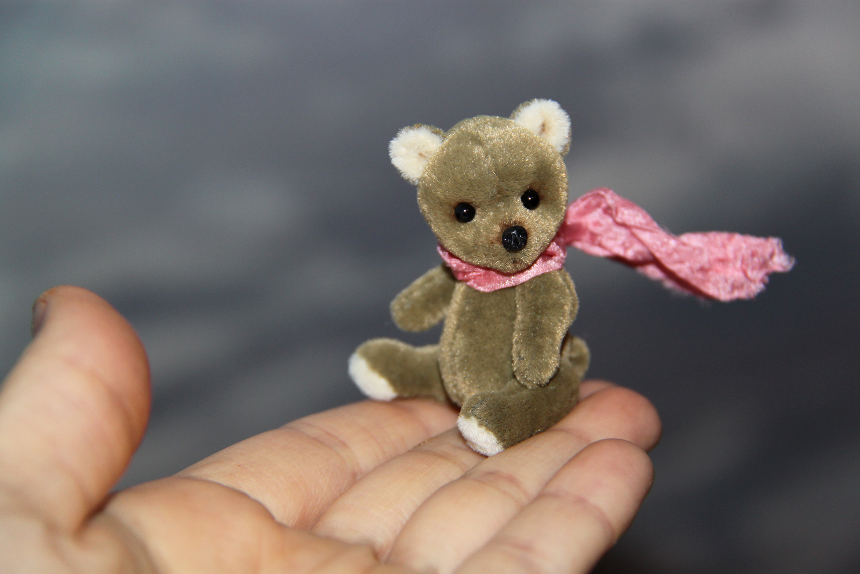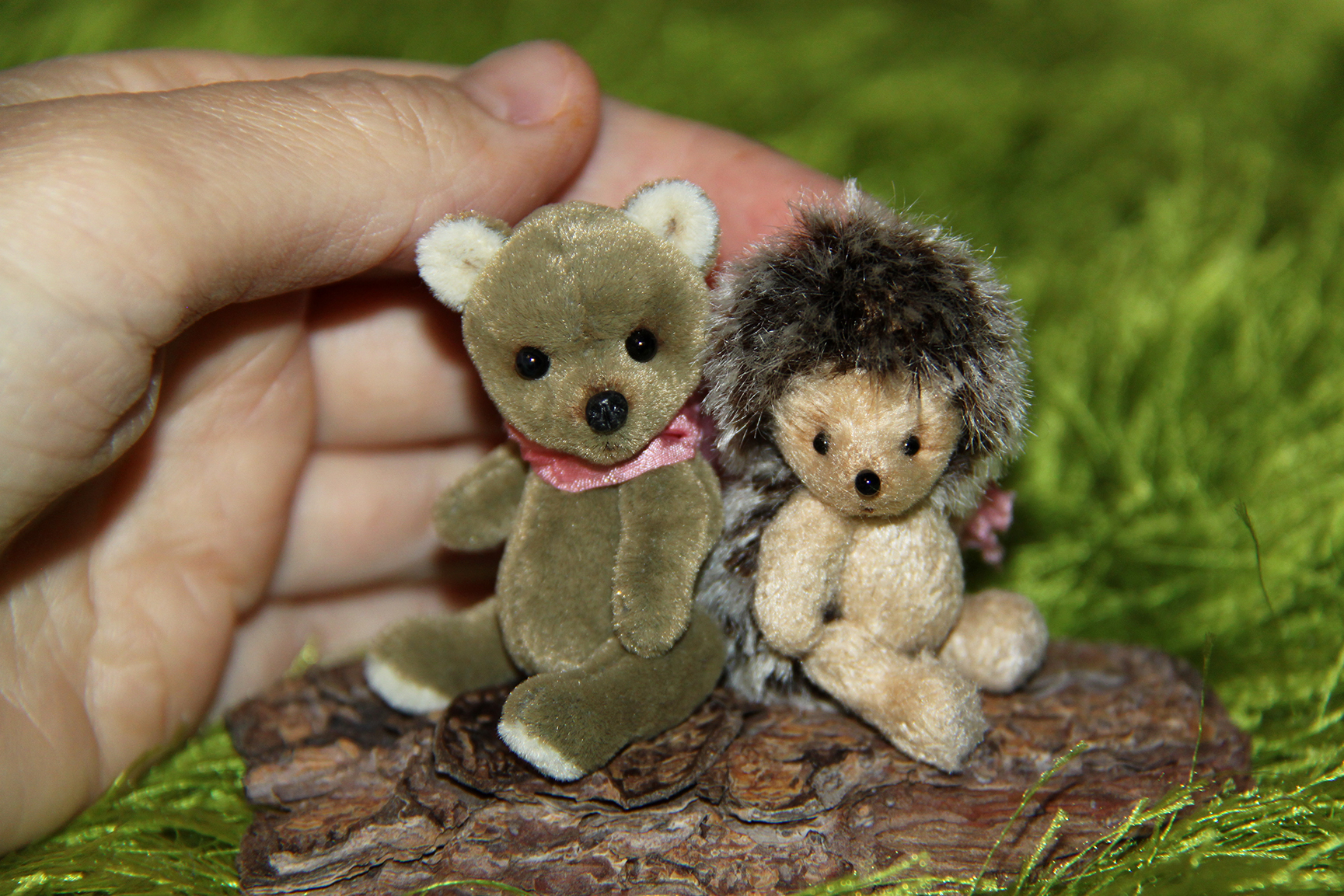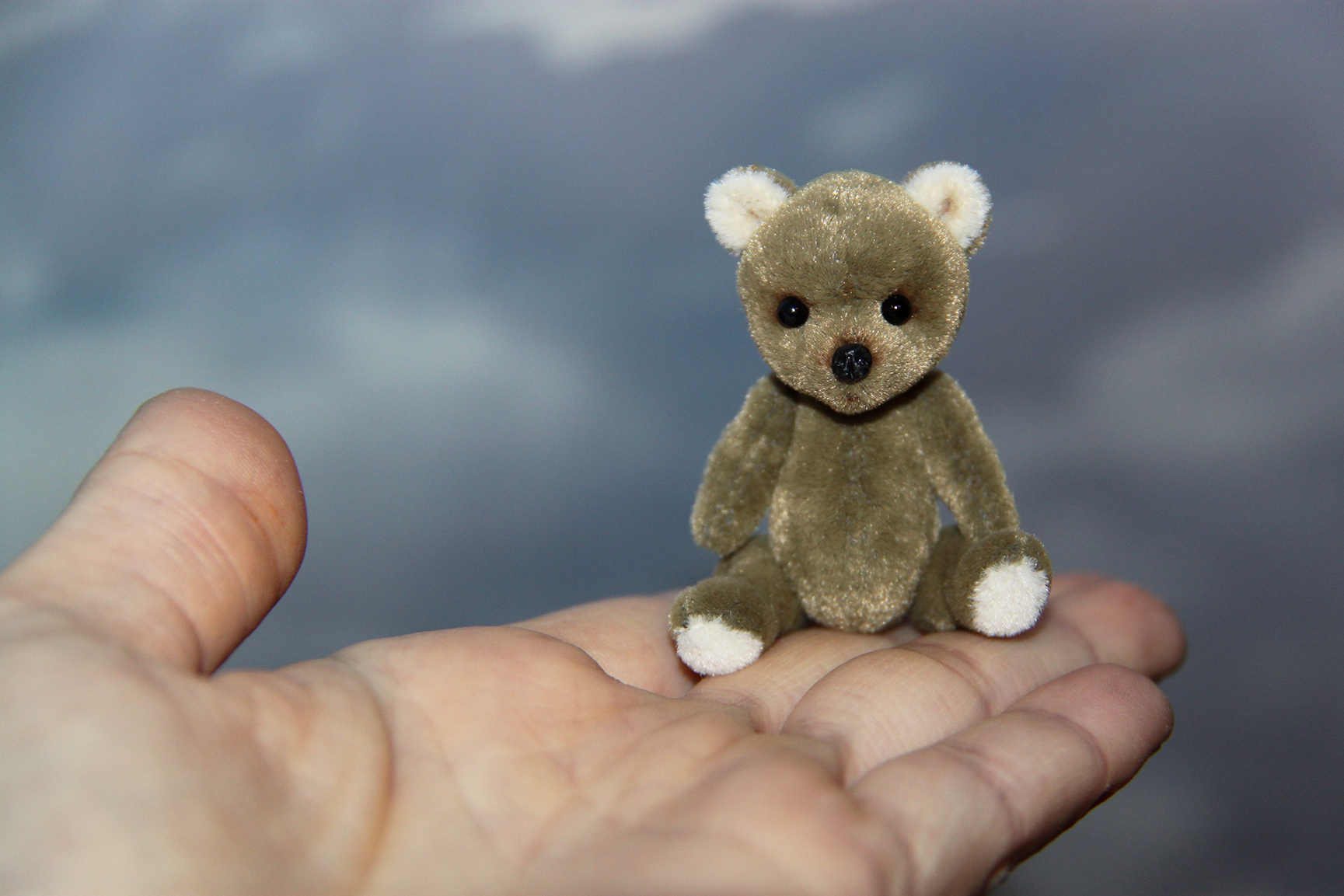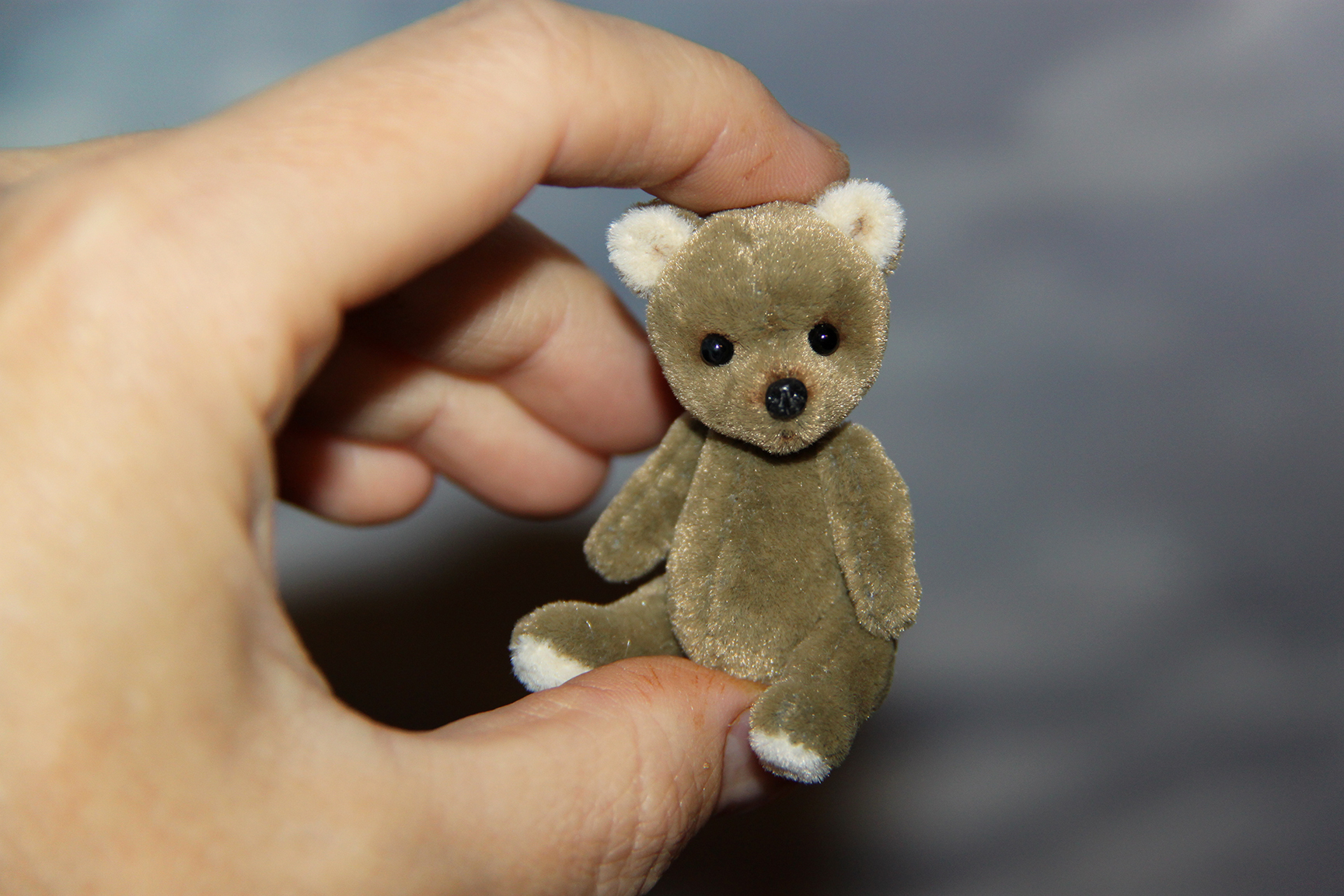 Малыш выполнен в технике тедди, голова и лапки подвижны. Рост 5 см. Самостоятельно сидит.