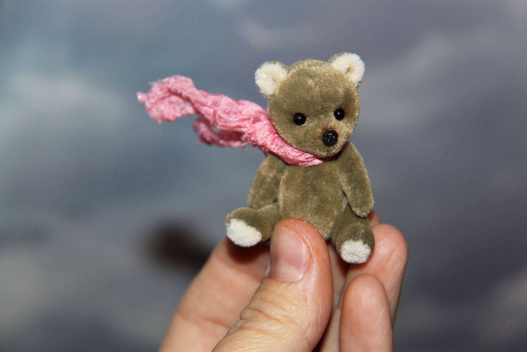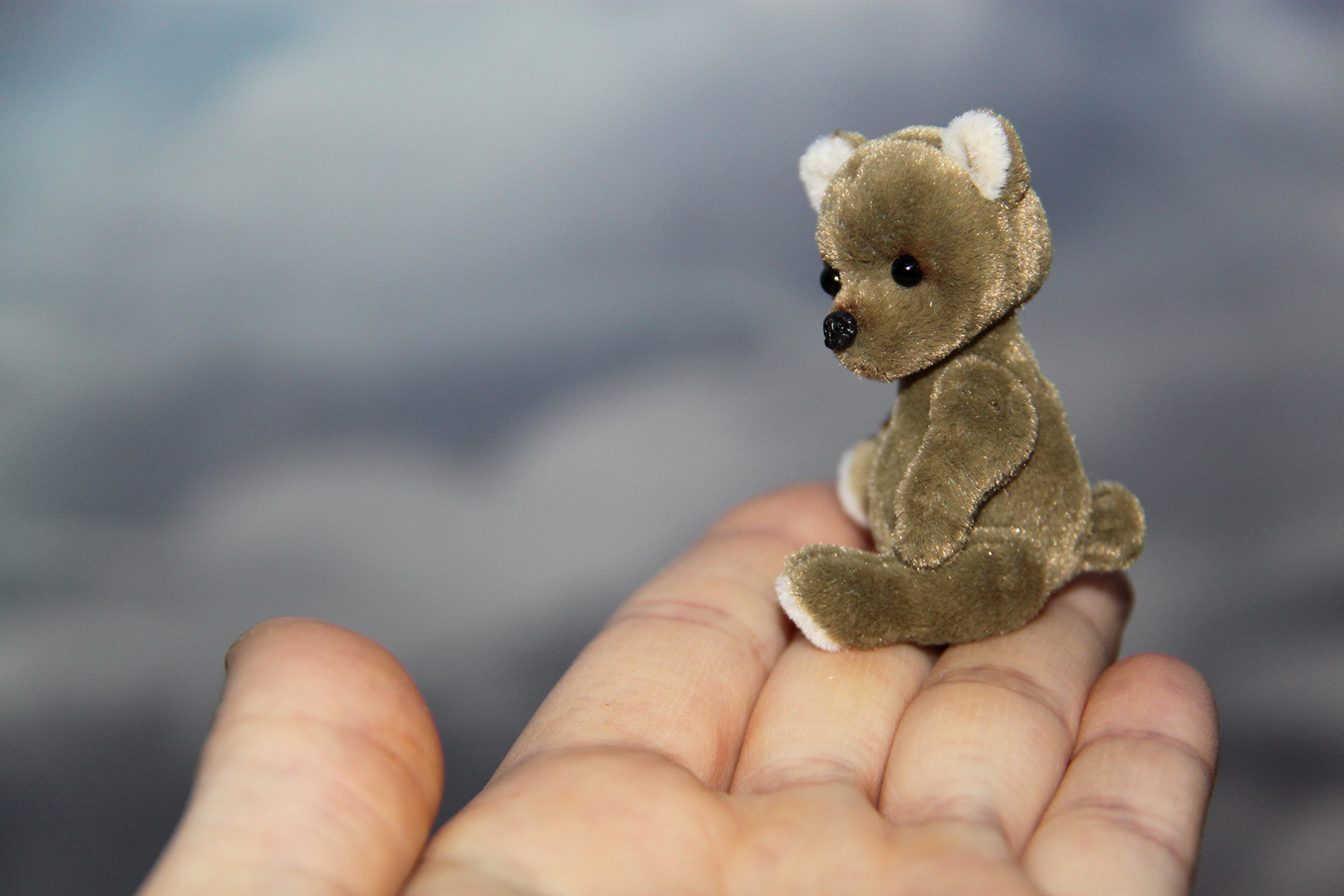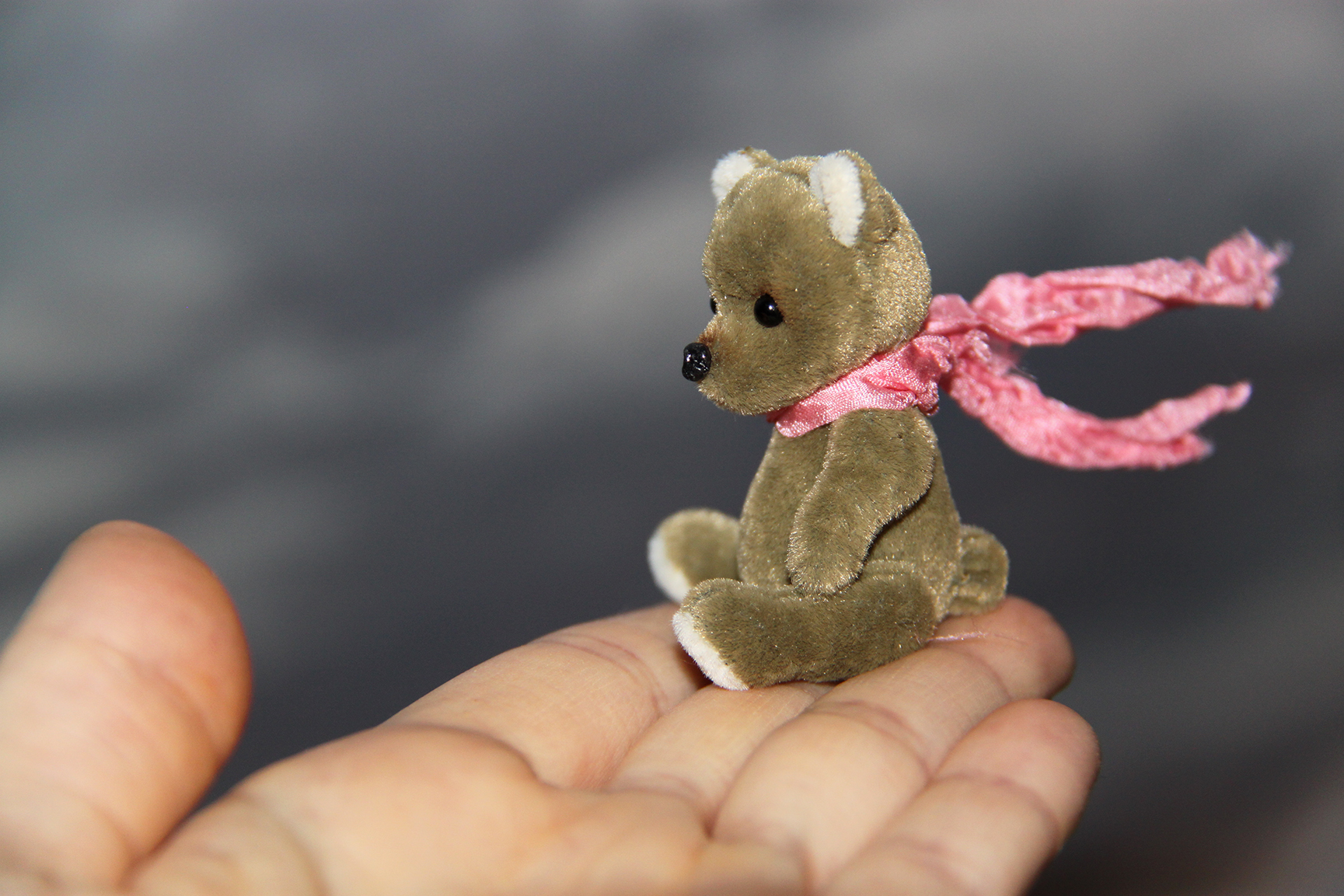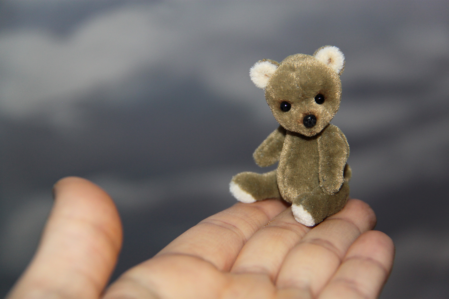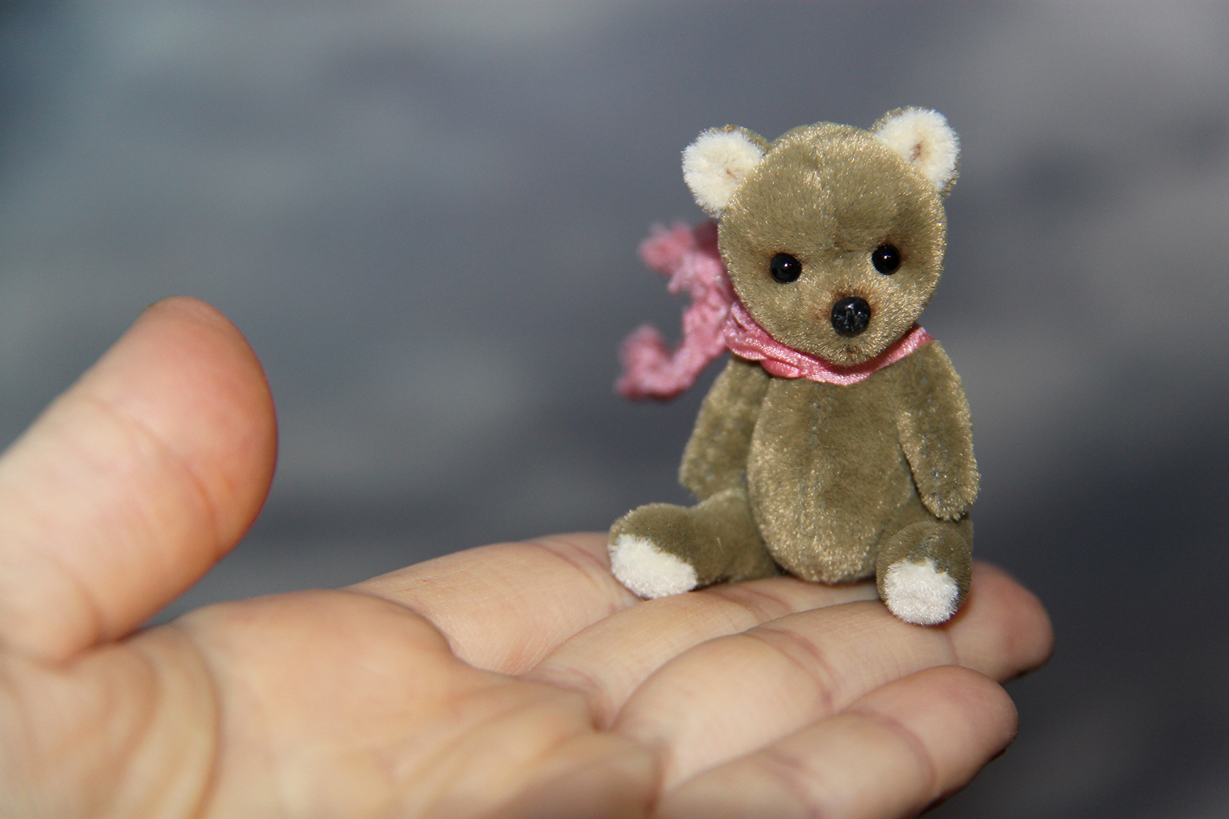 Малыш выполнен в технике тедди, голова и лапки подвижны. Рост 5 см. Самостоятельно сидит.
