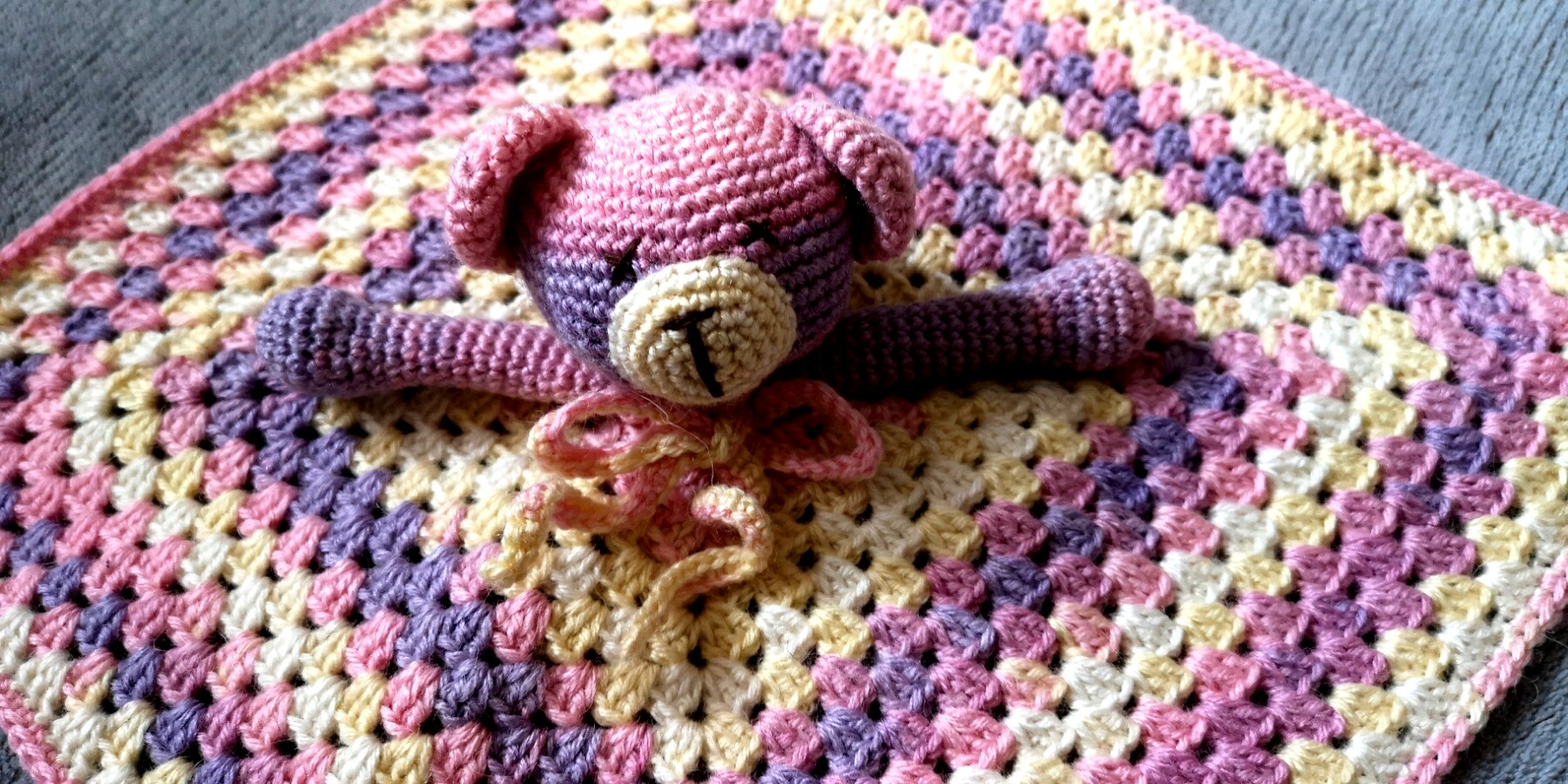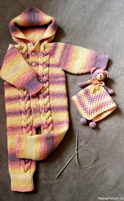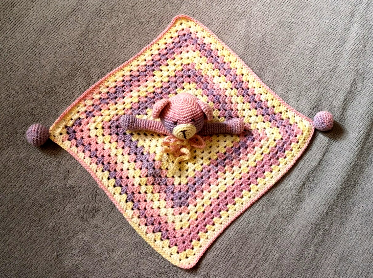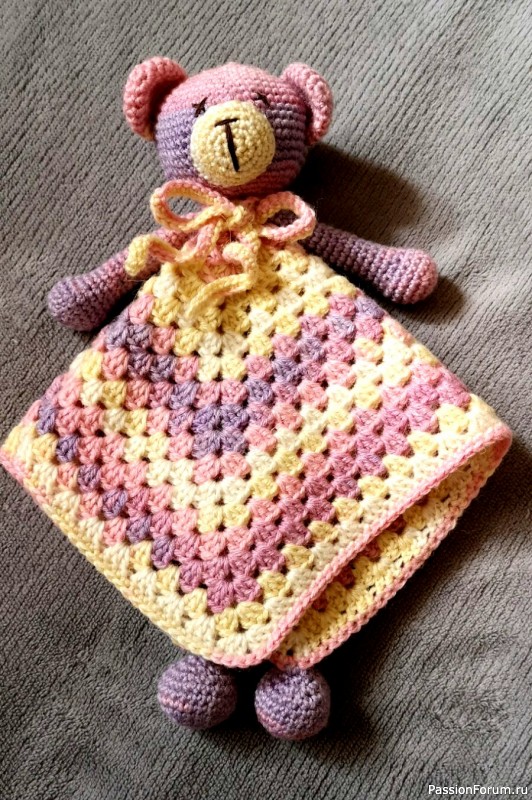 Из остатков пряжи связала ещё и комфортер))) Получилось мило)