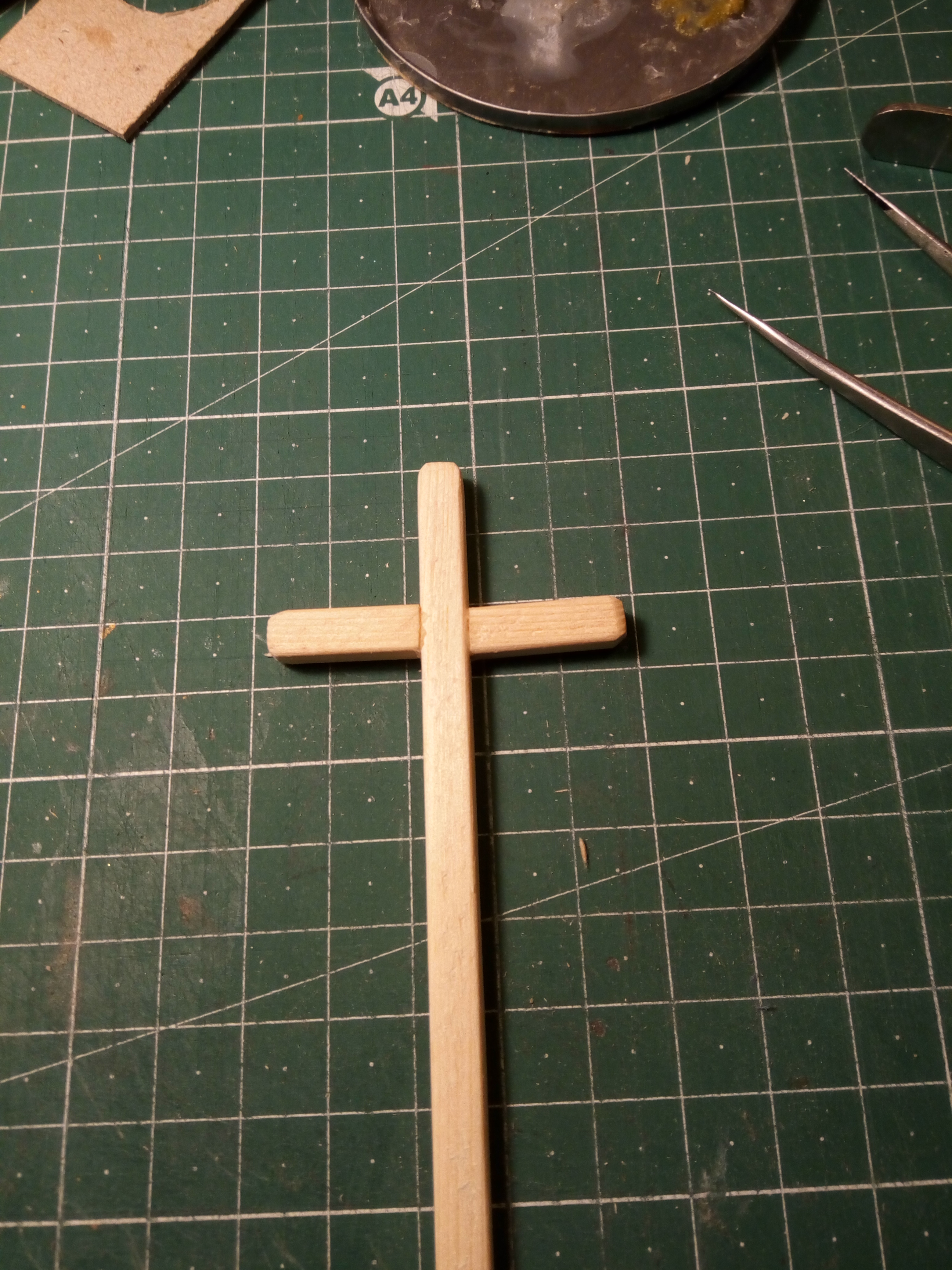 Дальше достала из закромов сосновые "щепки" - в прошлом это срезанные швы от "вагонки", и начала "сочинять" подобие креста.
