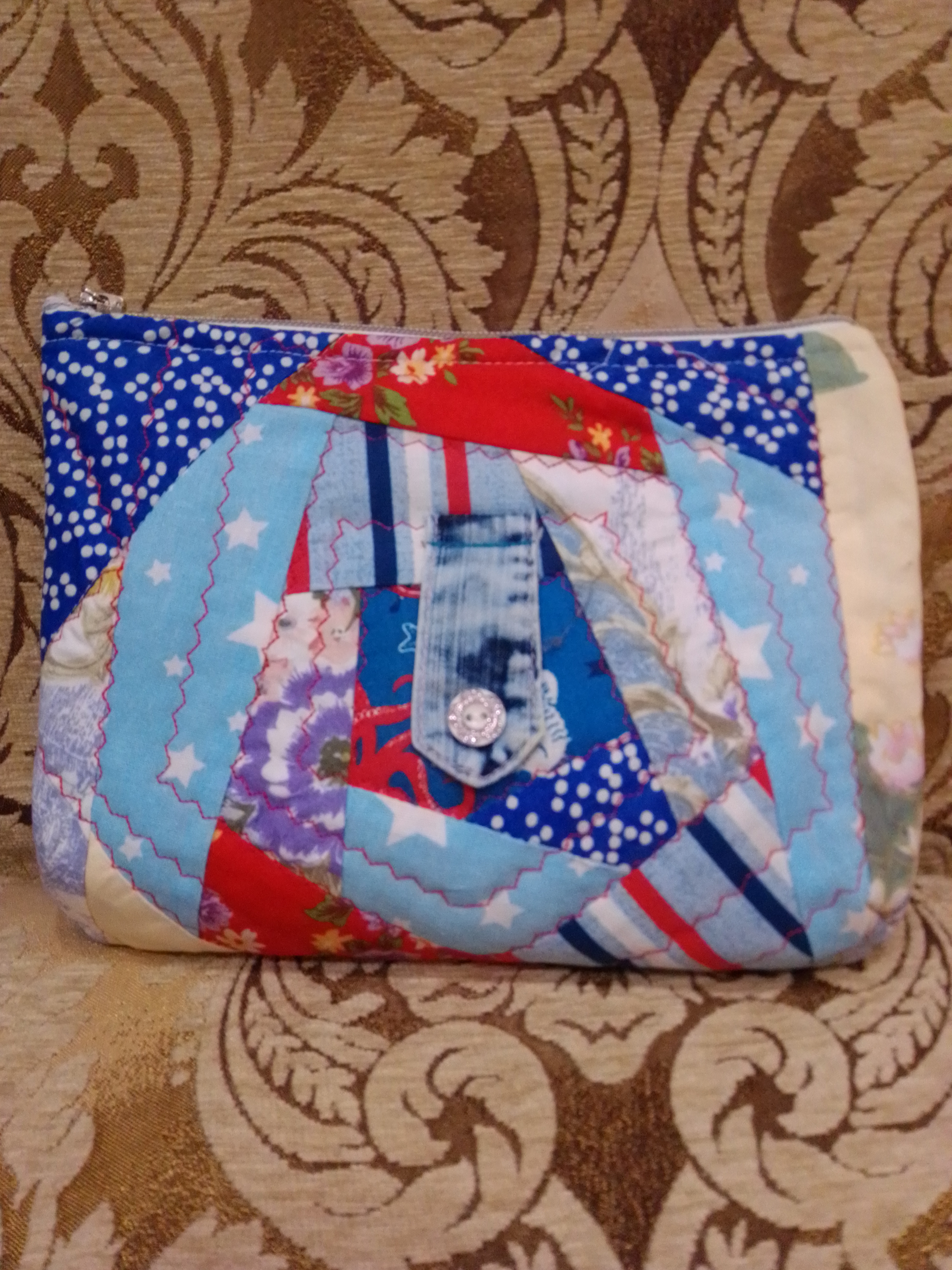 Это я использую детские джиновые вещички, которые идут на утилизацию для косметичек. На них есть карманы, вышивки, отстрочки-уже готовые.