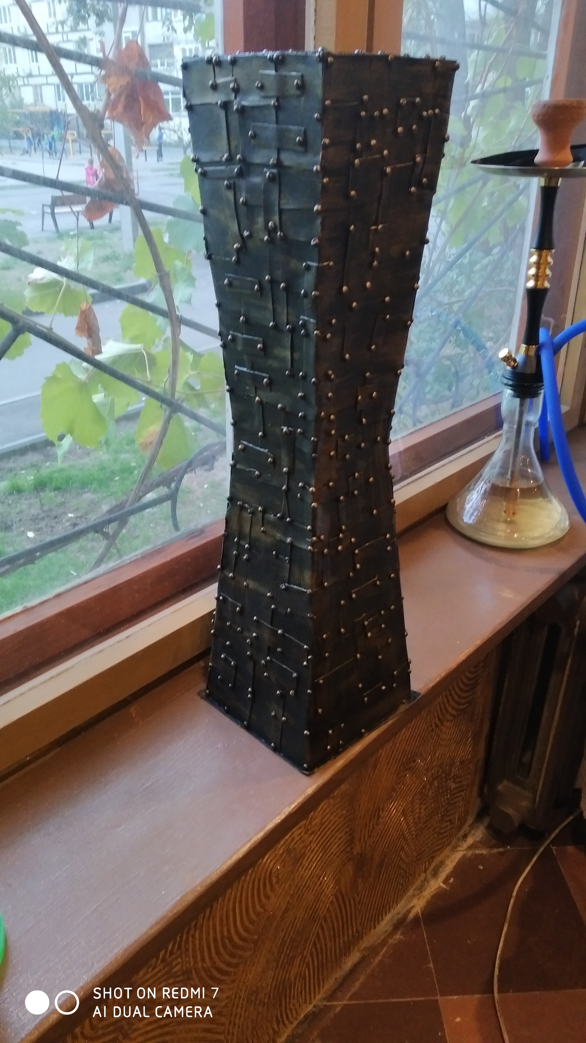 Ваза хорошая, бесспорно. Но, мне кажется (да и не только мне), что это имитация не кованой, а клёпаной вазы. Кованая — это когда цельная выковывается. А так очень неплохо. Только когда что-то пишете в интернете, пусть кто-нибудь из близких исправит допущенные в тексте грамматические ошибки. А то как-то неудобно получается.