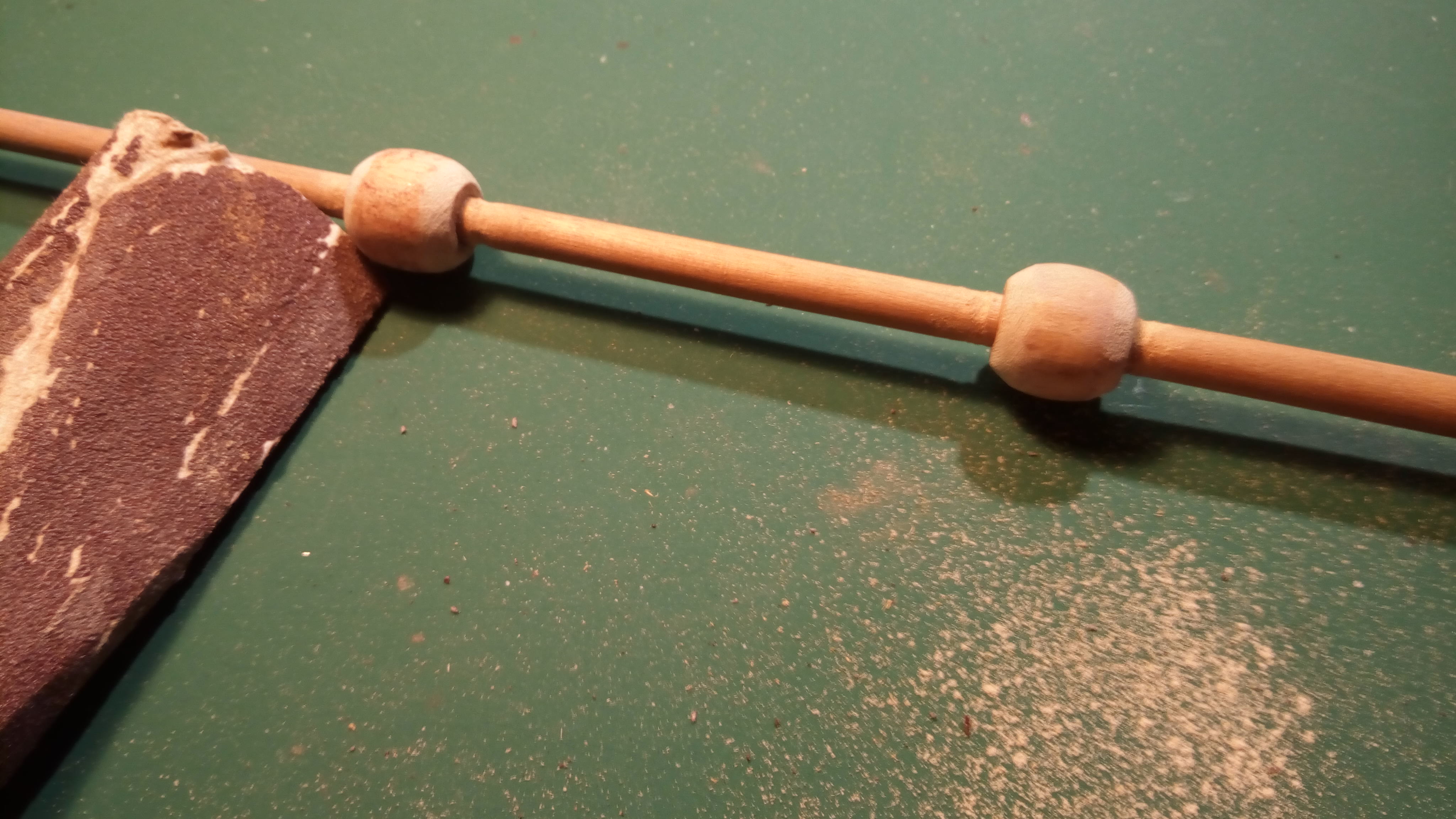 - бусины деревянные -3 шт (1шт -рукоять, 2шт- перехваты по центру)
