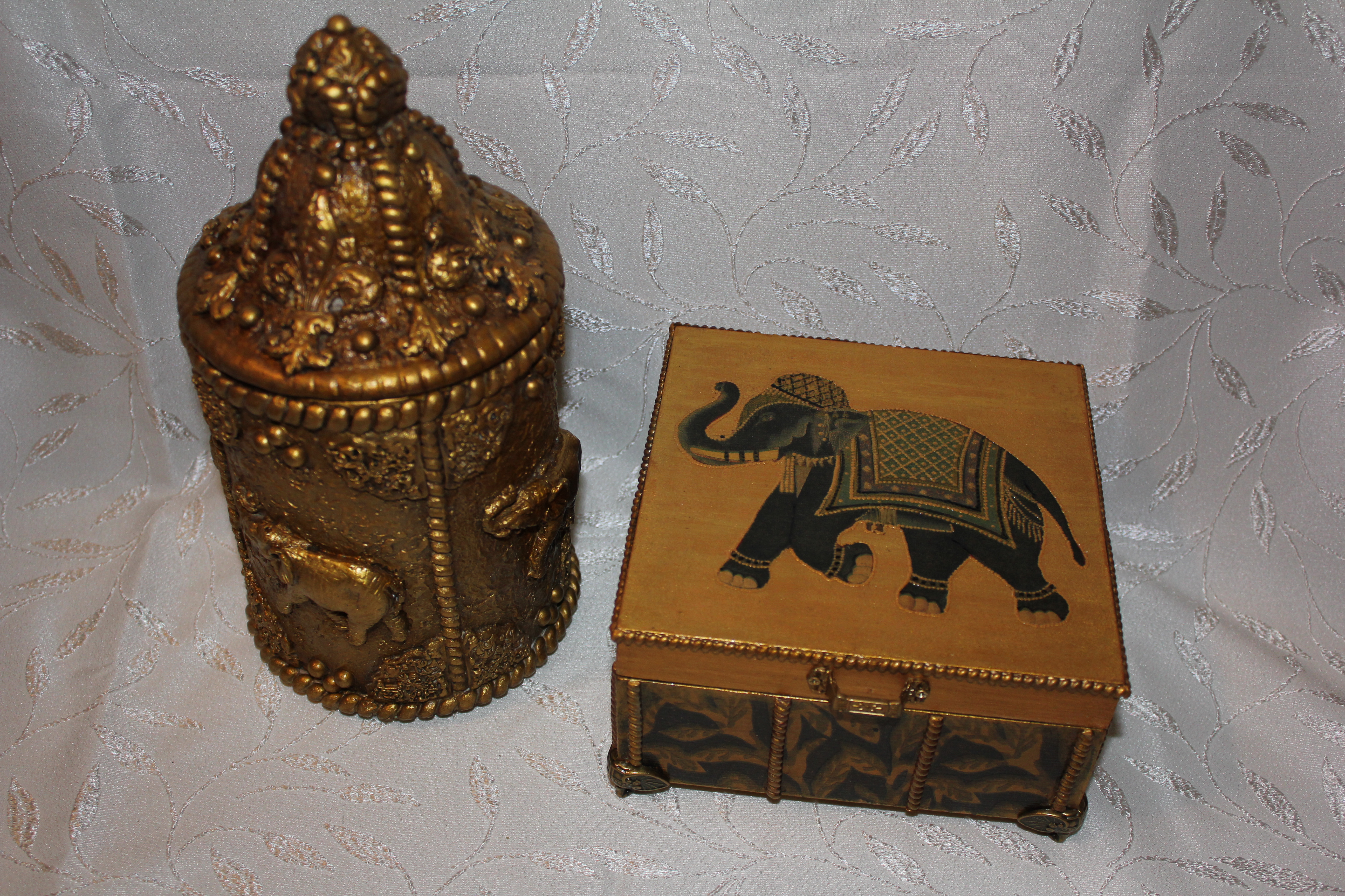 Миная, очень понравился первый комплект, имитация бронзы на все 200%, чайный короб и подсвечники выглядят как настоящий металл. Очень люблю такие имитации , это прям мое, мое.