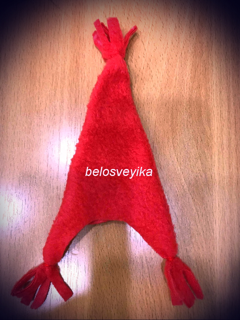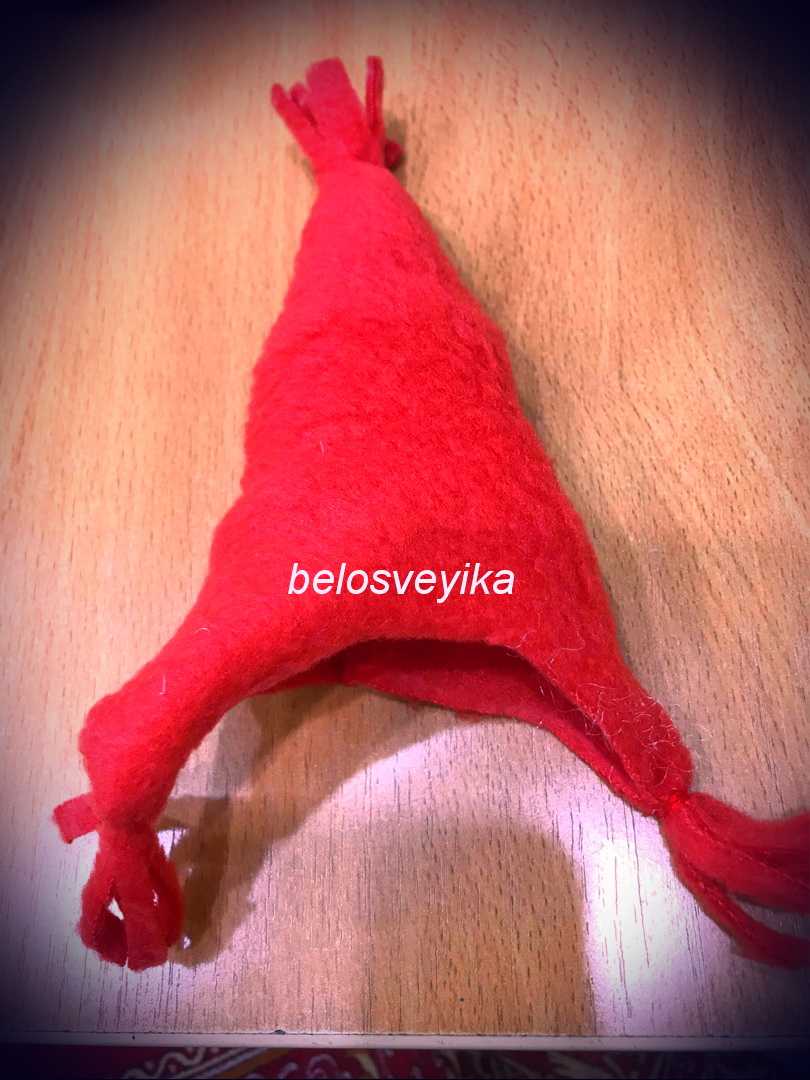 Для изготовления понадобятся: драп серый или любого цвета на шубку, флис красный на шапочку, пряжа или шерсть для валяния на волосы, 2 чёрные бусинки для глаз( можно и без них), наполнитель( у меня синтепух), пластик( у меня кухонная доска)