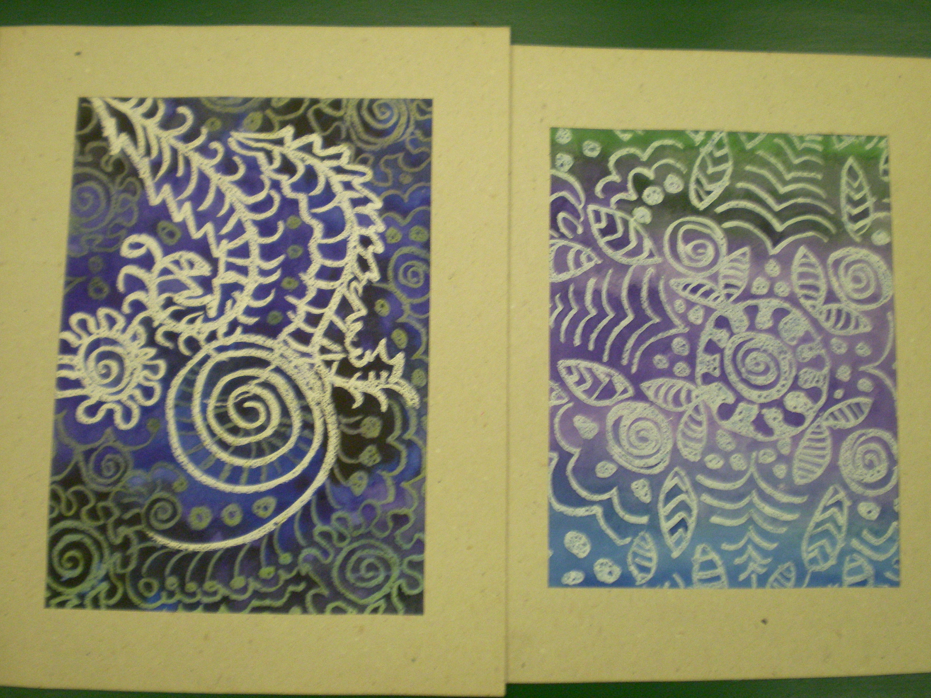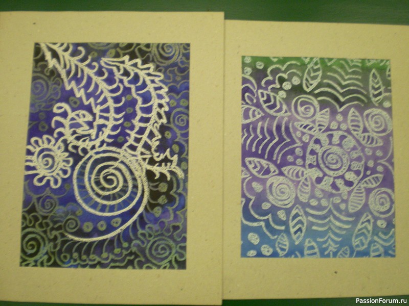 Раньше свечкой натирали лист, потом чёрной тушью закрашивали, а затем выцарапывали пером или острой палочкой, тупой иголкой. Очень понравились работы детей!
