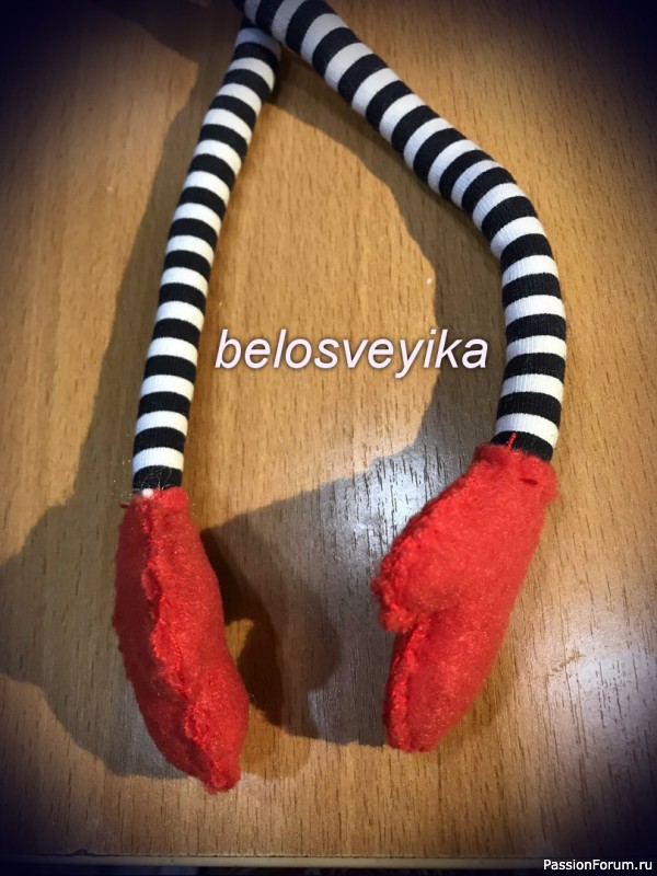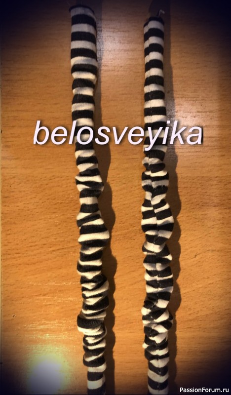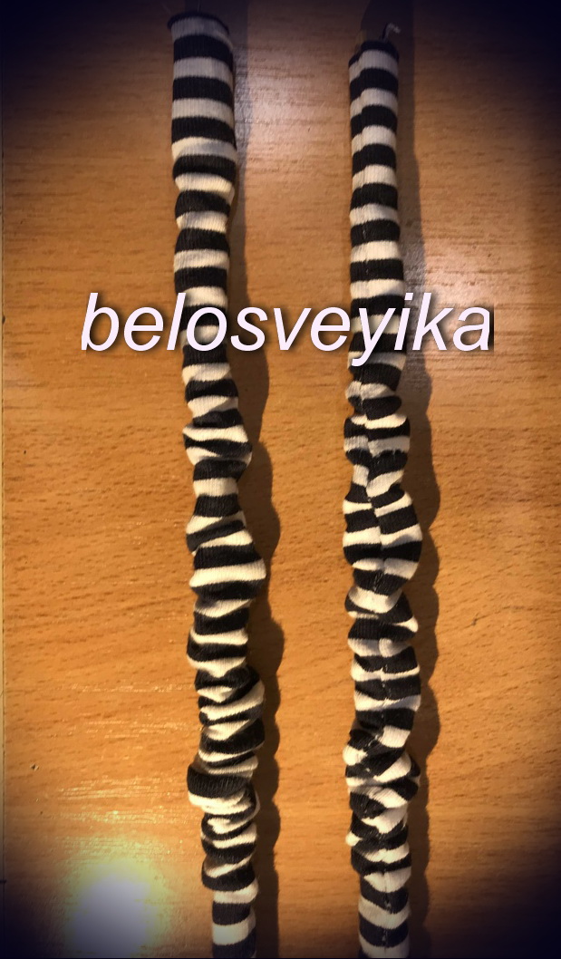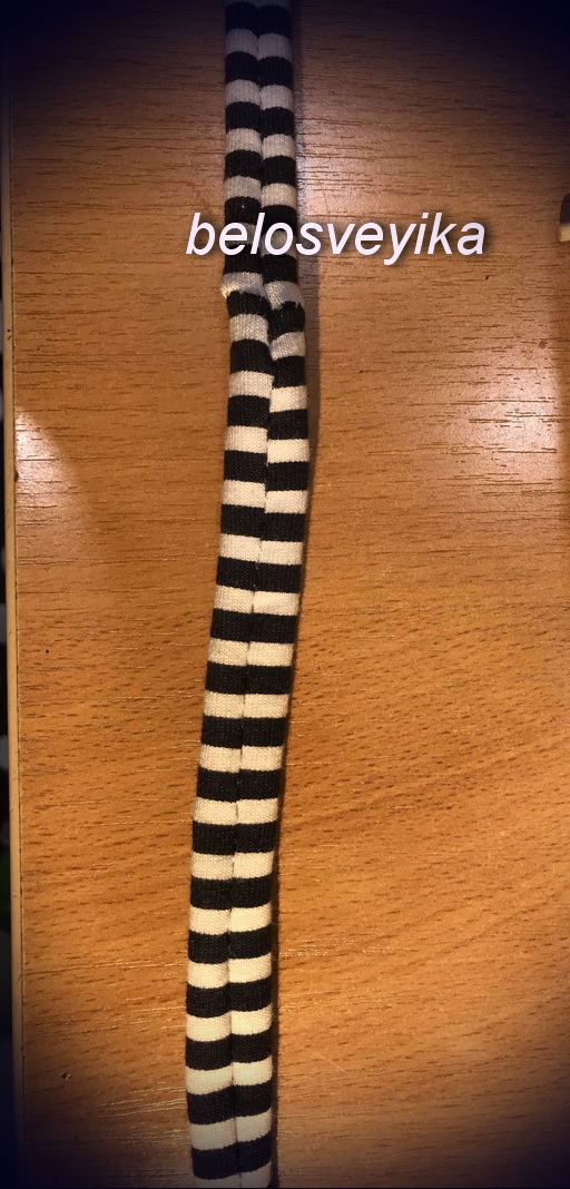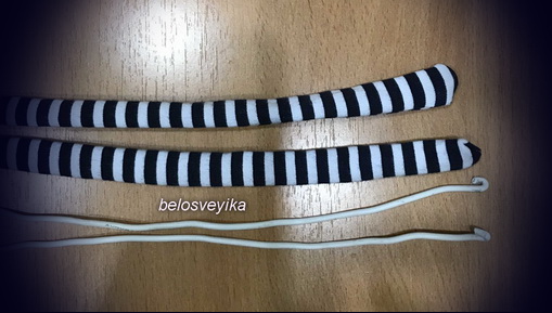 5) Ноги.Берем любой трикотаж, я взяла полосатый.Берем 2 палочки для суши