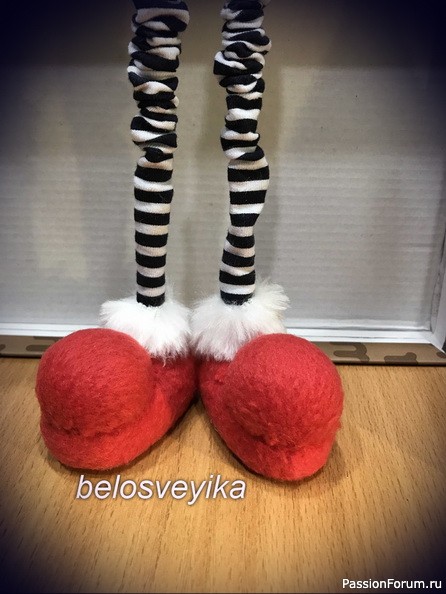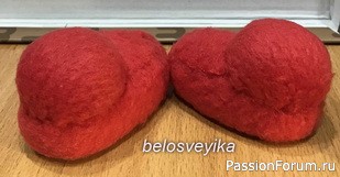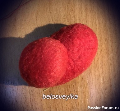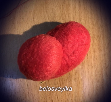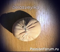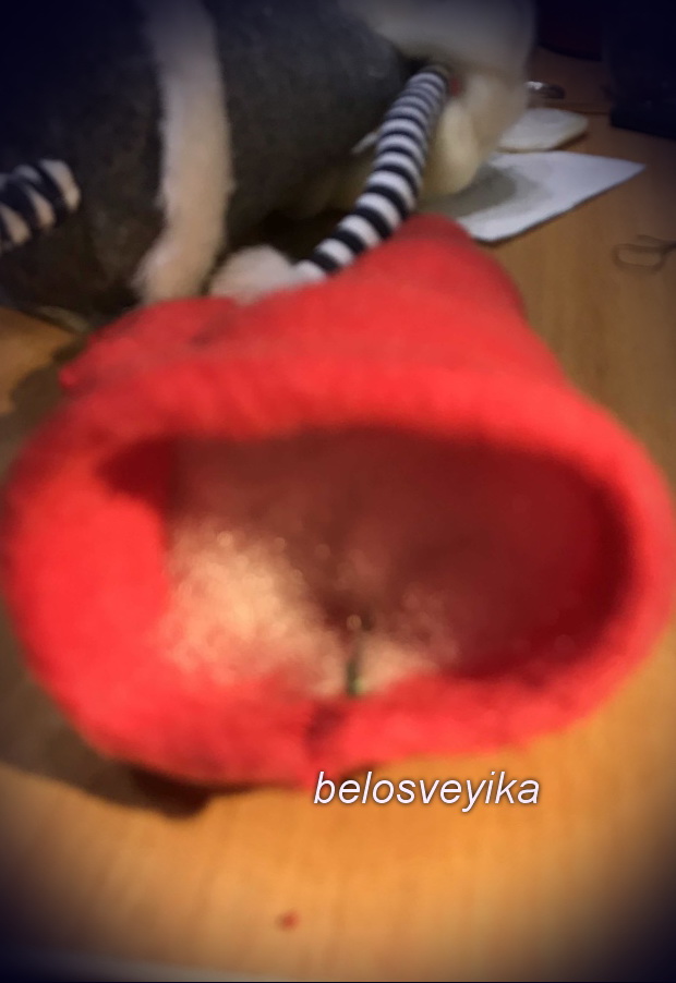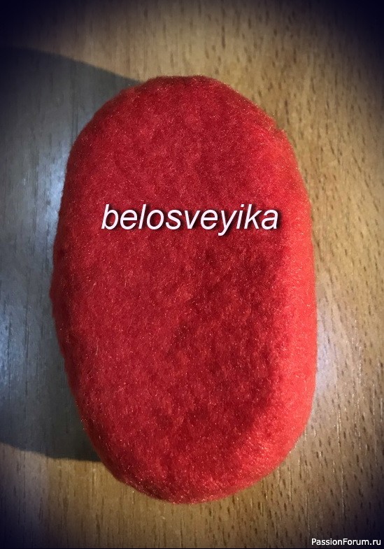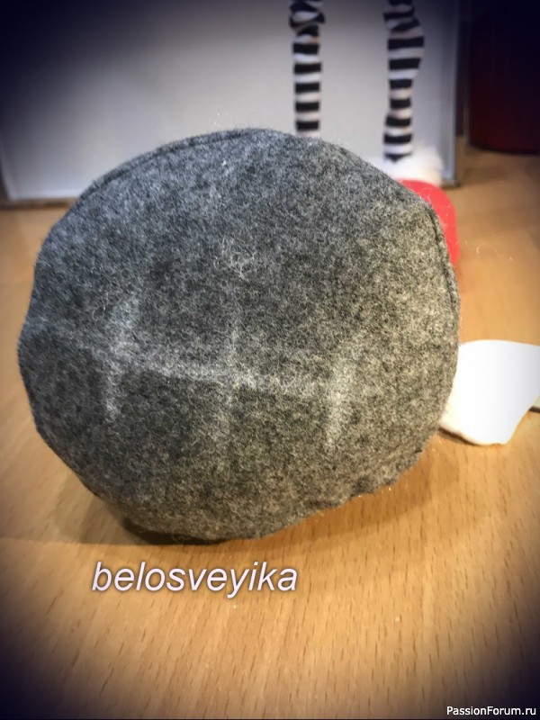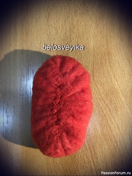 18) на нос пришиваем обшитую полусферу.Получаем иммитацию обуви с помпоном.