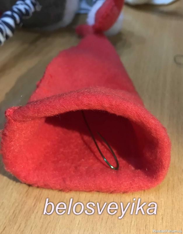 Нос приклеиваем и только затем приклеиваем на его край шапочки.