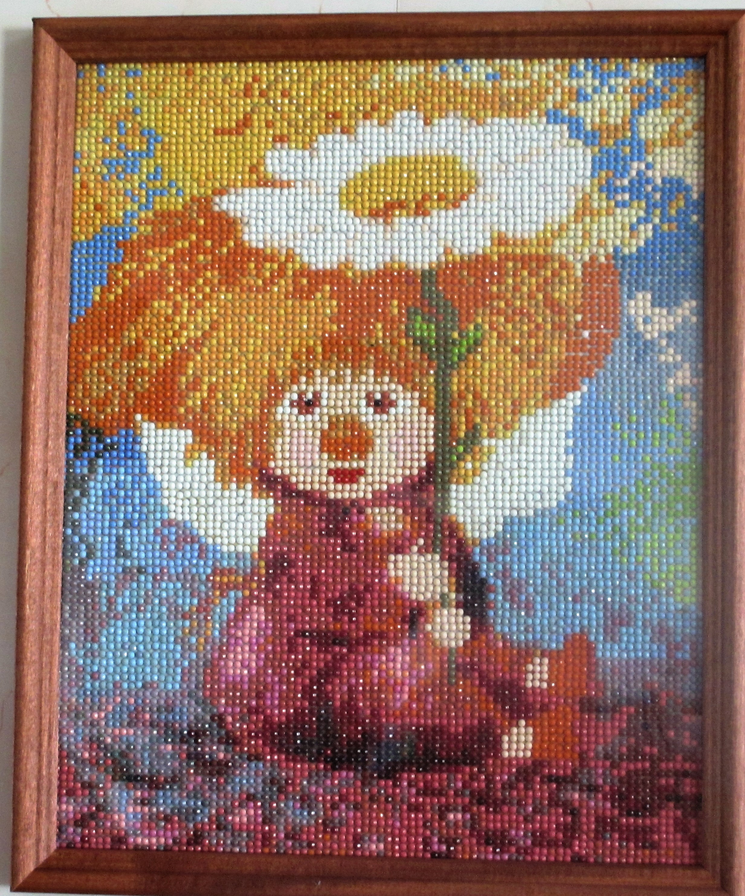 В рамке. Два ряда слева не выкладывала, т.к. пришлось отрезать, очень проблематично купить рамки, по заказу и то привозят не того размера, что нужно.