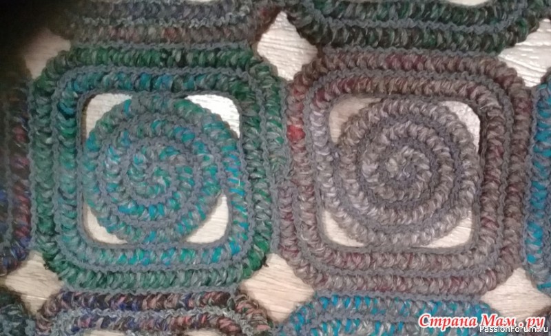 Совершенно спонтанно связался у меня этот коврик. Вязала на свой страх и риск не веря в успех, поэтому материал применила бросовый.