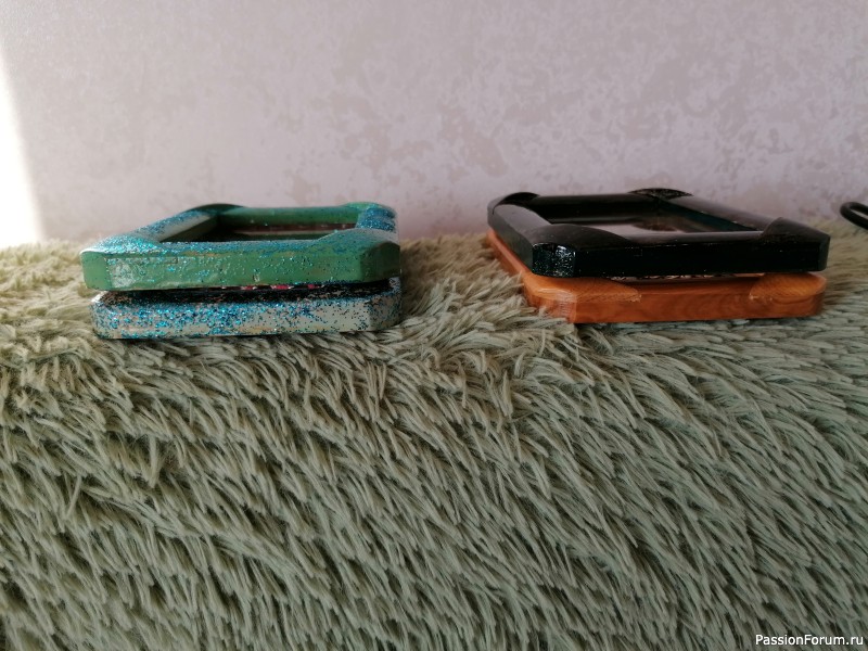 Добрый день! Очень захотелось порукодельничать и я вечером принялась за дело. Достала свои запасы - металлическую фурнитуру, кобашоны, камушки и стала мастерить ёлочки-картины. Давно у меня лежали без дела небольшие рамочки, я их как-то давно красила: в начале красила акриловыми красками, потом одну из рамок покрасила лаком для ногтей с блёстками, другую покрыла лаком, обсыпала обильно блёстками и когда лак высох - смахнула лишние блёстки и сверху всё покрыла лаком. И вот рамочки мне пригодились для поделок)) Так как рамки не глубокие, а мне нужно, чтобы мои ёлочки в них поместились, то я склеила по две рамки: в верхней оставила стекло (приклеила на клей момент прозрачный с обратной стороны), картинку вставила в нижнюю рамку. И вот, что у меня получилось.
