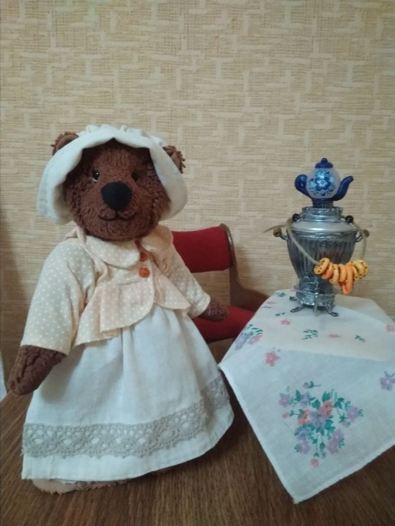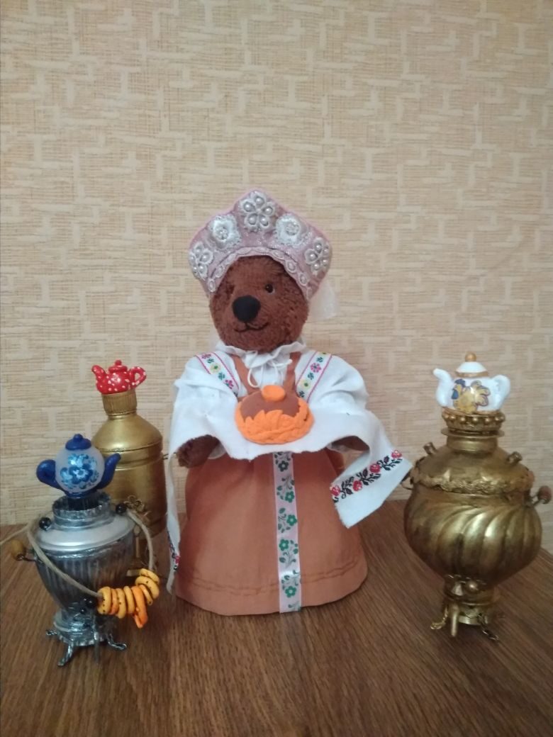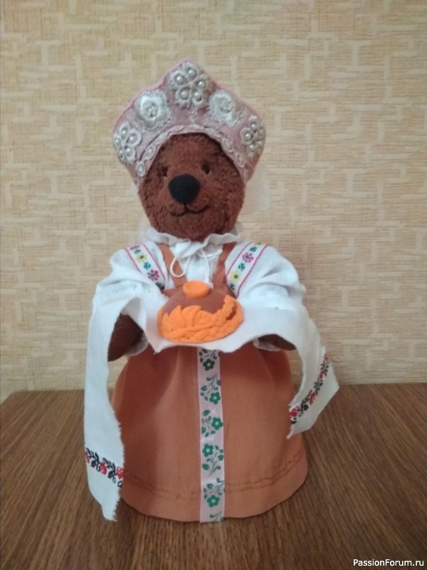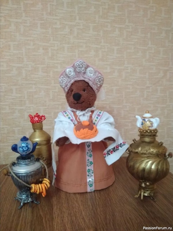 Ну и Матрёна! Галя, я посмотрела топик про Матрёну и настроение поднялось, вот спасибо! Такая чудесная медведица, а наряды отпад просто, особенно зимний! И самовар отличный для Матрёны, и вёдра с коромыслом, можно фильм снять про Матрёнину жизнь.