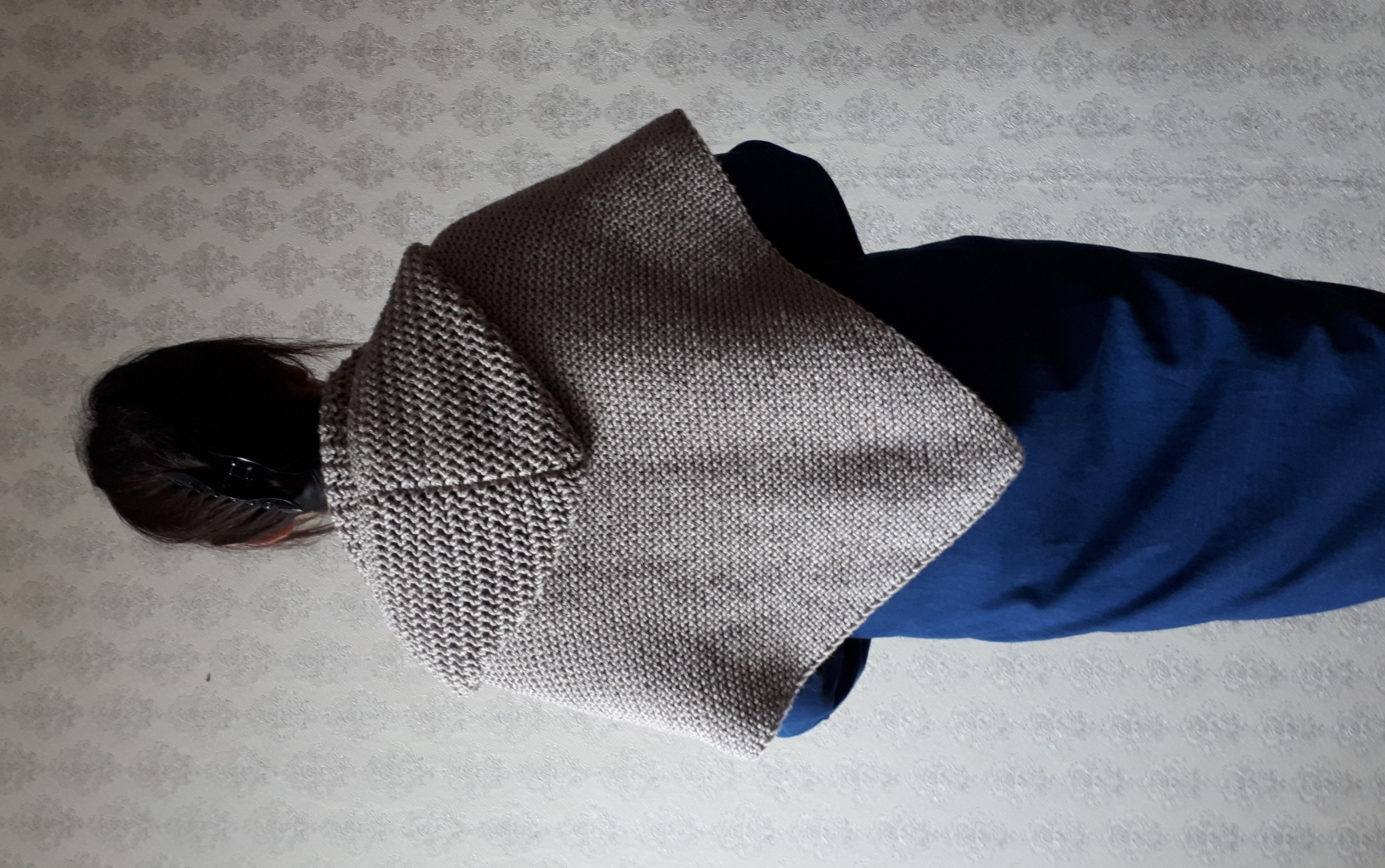 Придумала вот такую шаль. Идея не нова, конечно. Это третий вариант капюшона, который меня устроил. Сначала задумывала полностью платочной вязкой вязать, пробовала укороченные ряды, потом разбиралась с радиальным вязанием. Показалось, что капюшон тяжеловат, поэтому решила использовать такой сетчатый узор. Специально накупила объемную пряжу для быстрых проектов. Хотя на этот ушло немало сил и времени )) Могу сказать, что мне понравилась Alize superlana midi, не скрипит, даже когда стираешь. Вязала на круговых спицах №5,5. Всего ушло чуть больше 4 мотков. Подарила невестке, на работе холодно. А вообще, очень хорошо иметь такую вещь для дома, особенно, если в частном доме живешь))
