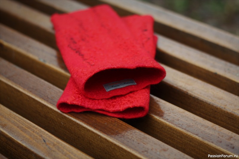 Сегодня вручила заказчице шарф, вчера — варежки в комплект к сумке. Митенки уже давно носит хозяйка, украшает ярким красным мир ))). Ну а сумка — это я для себя.