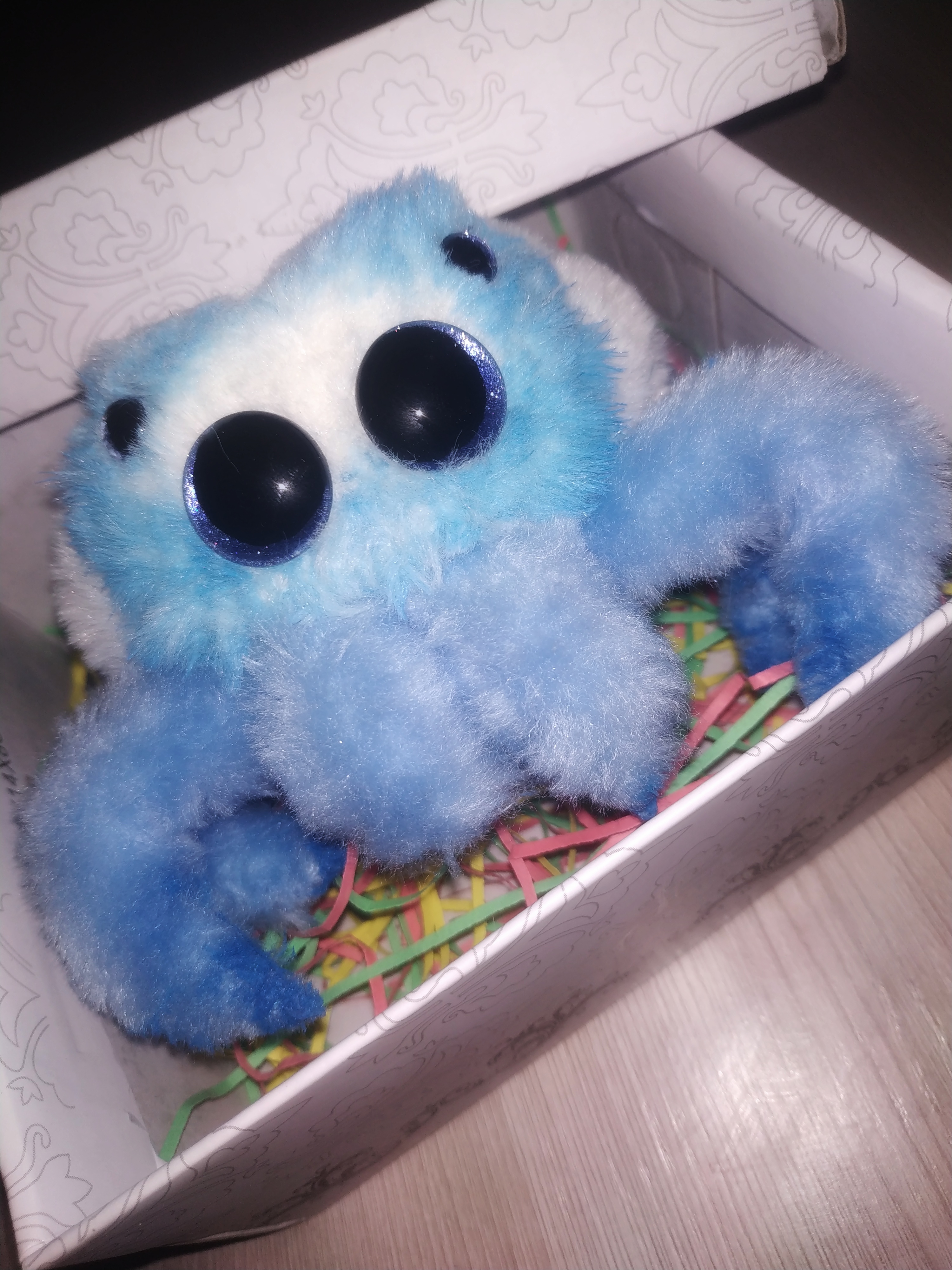 Здравствуйте. Как и обещала, показываю вам второго чудо паучка) цвета выбирала заказчица) Лапки у него кучерявые, что придает ему изысканности