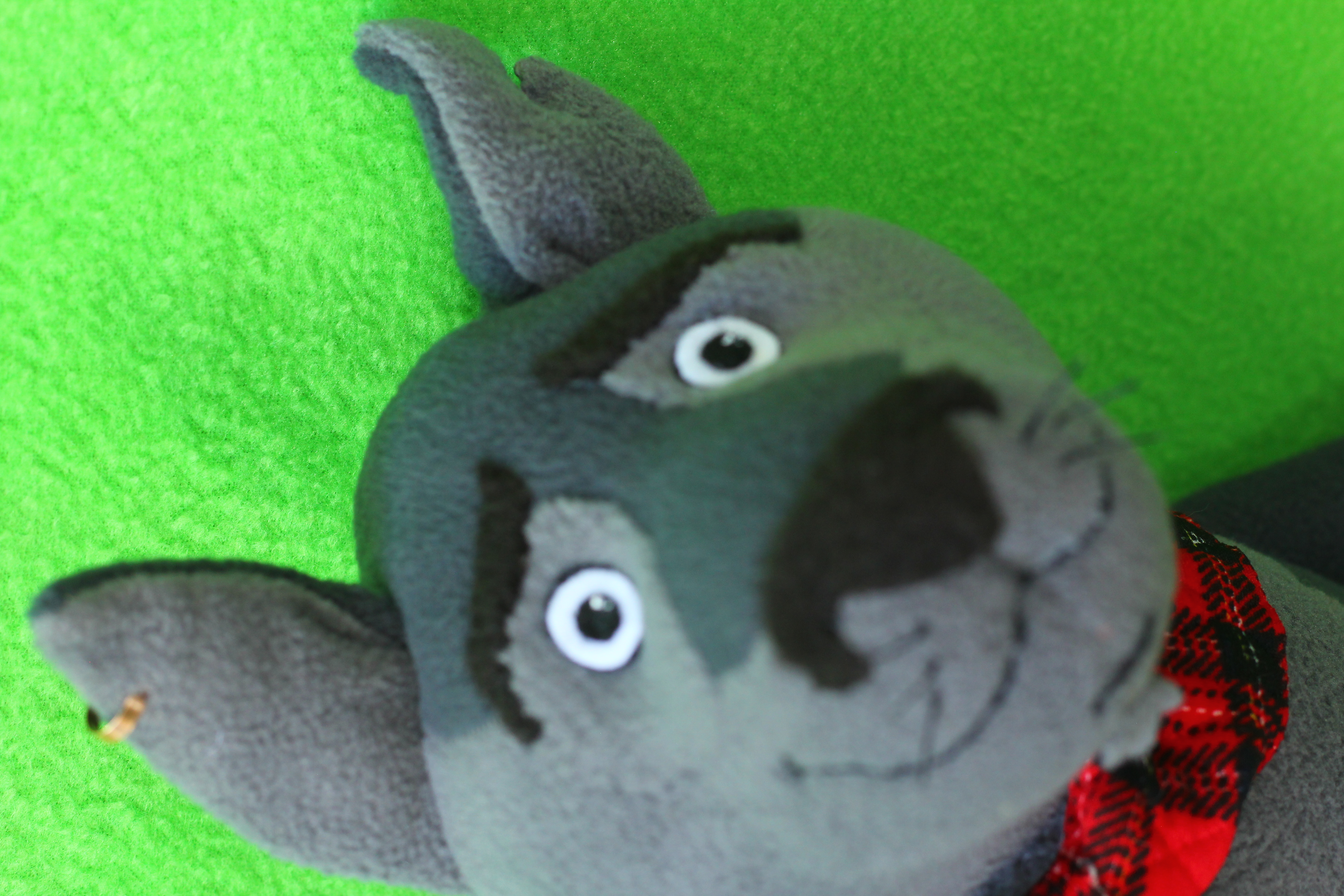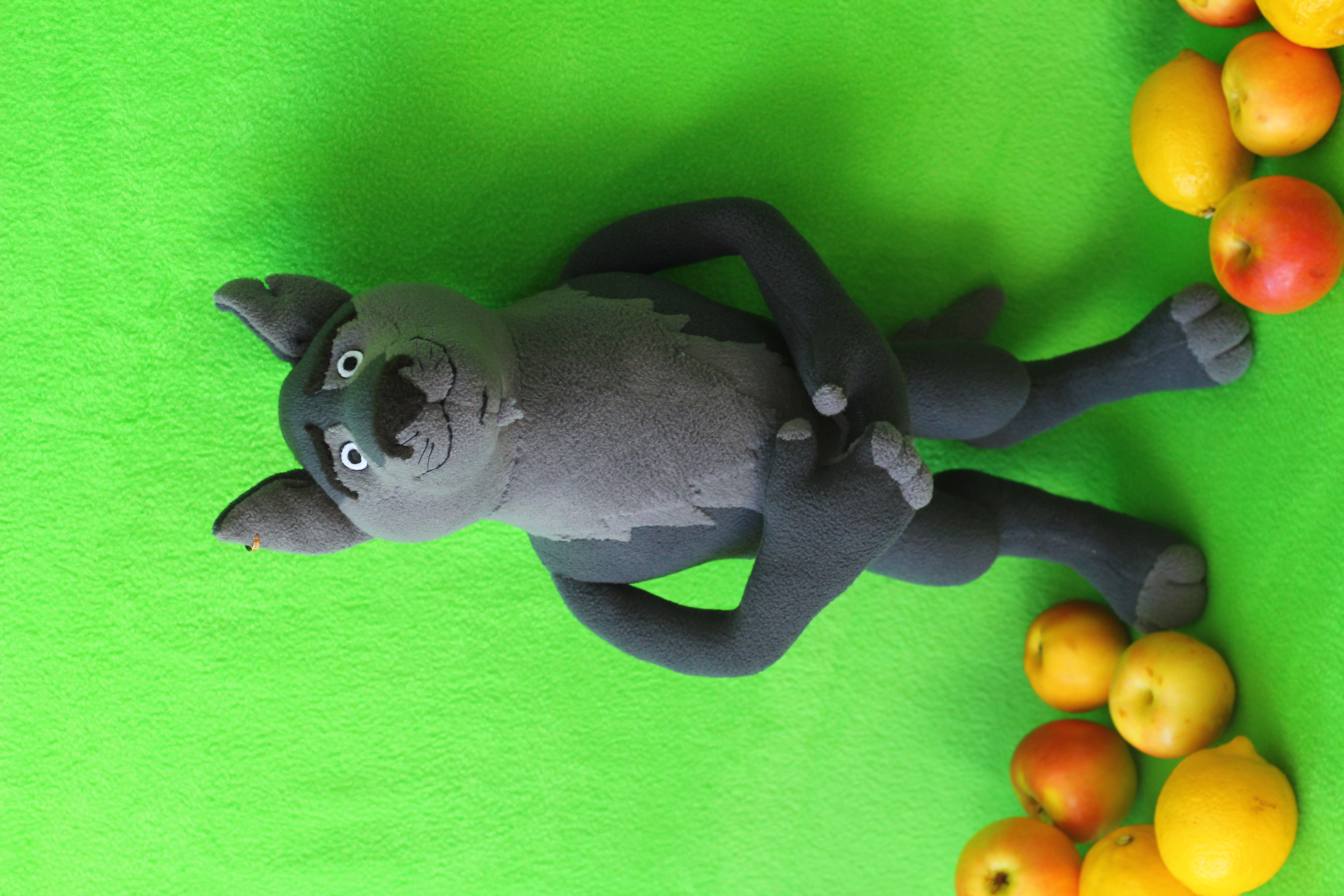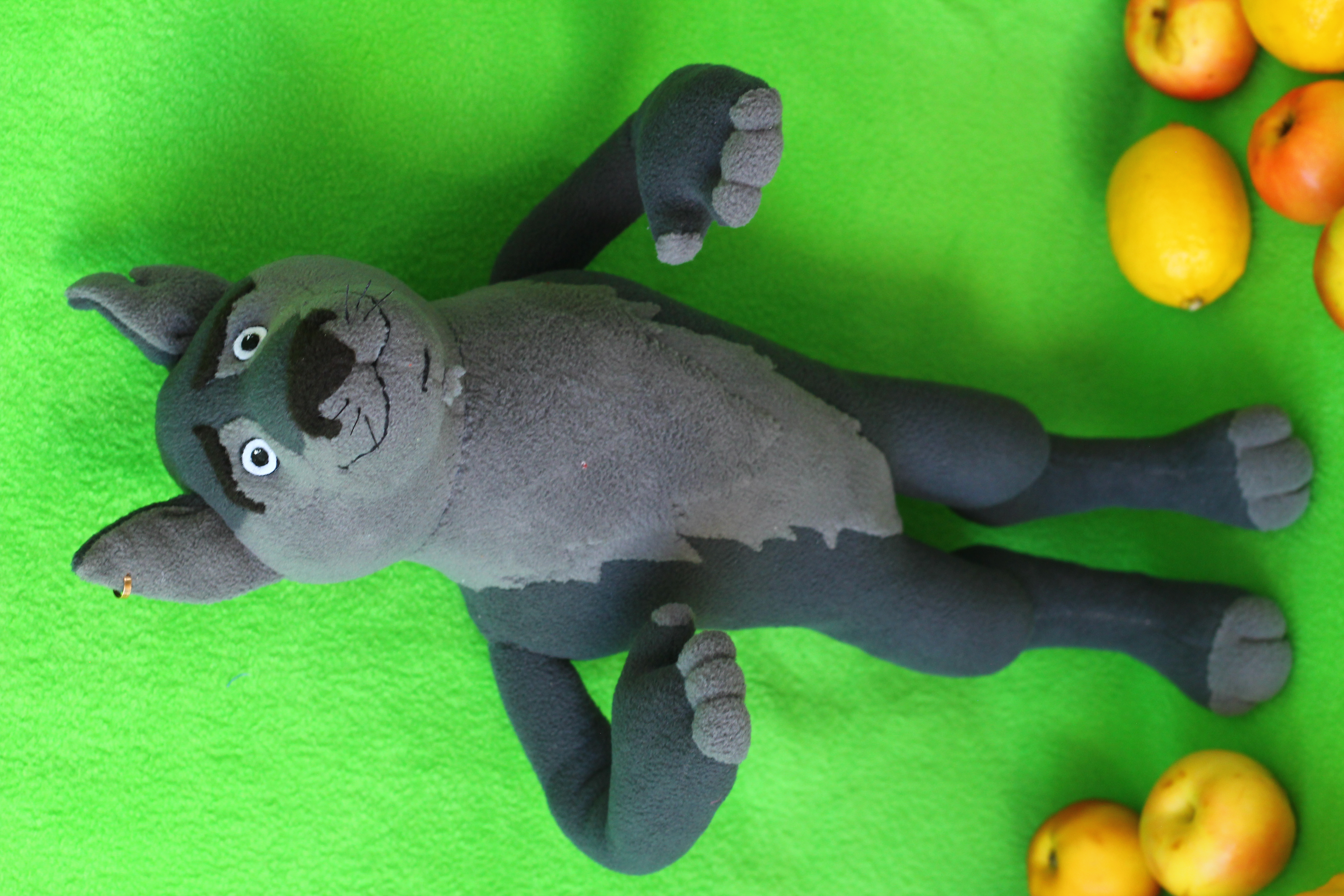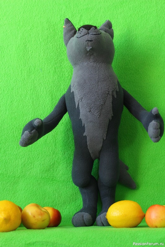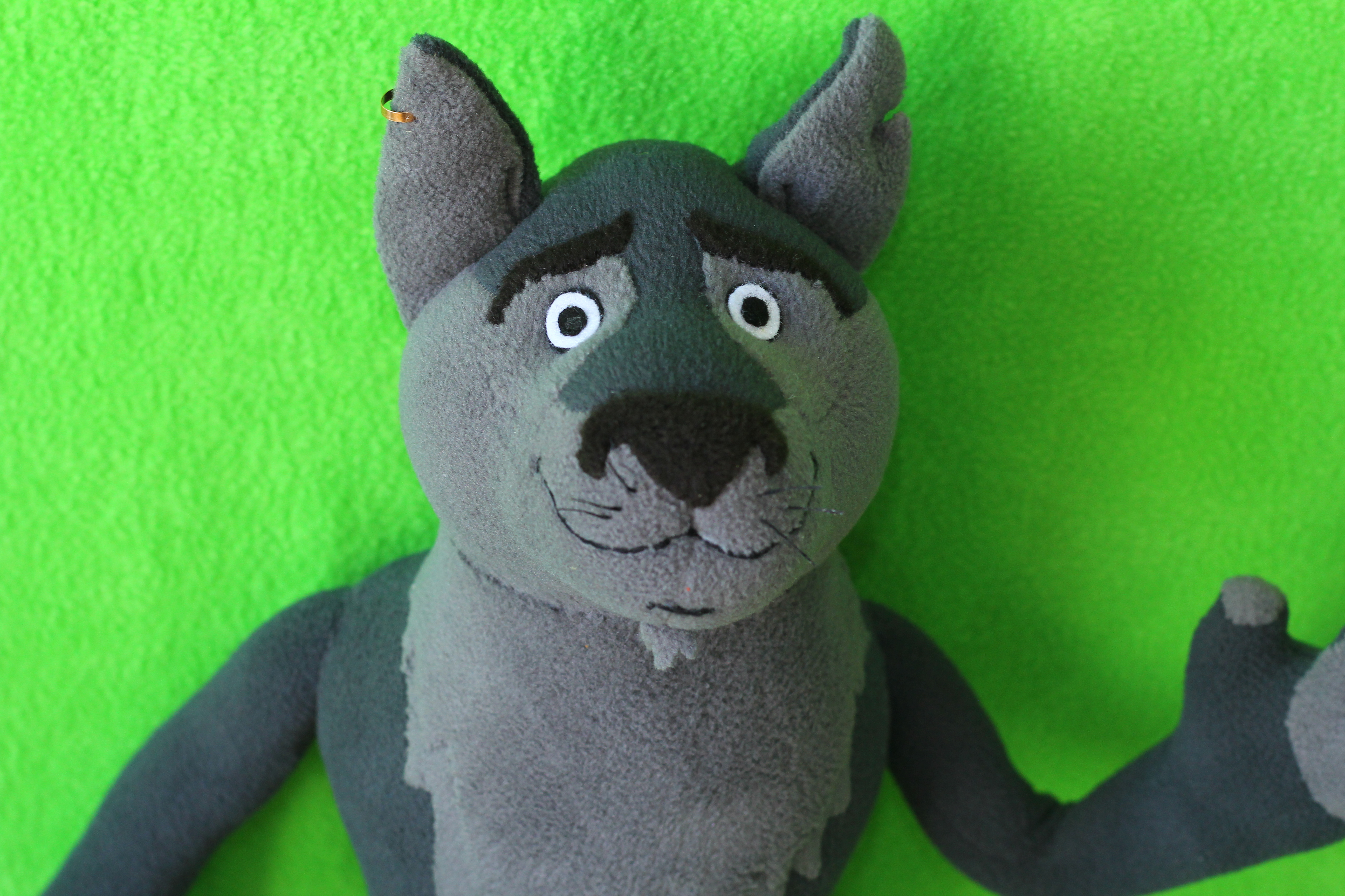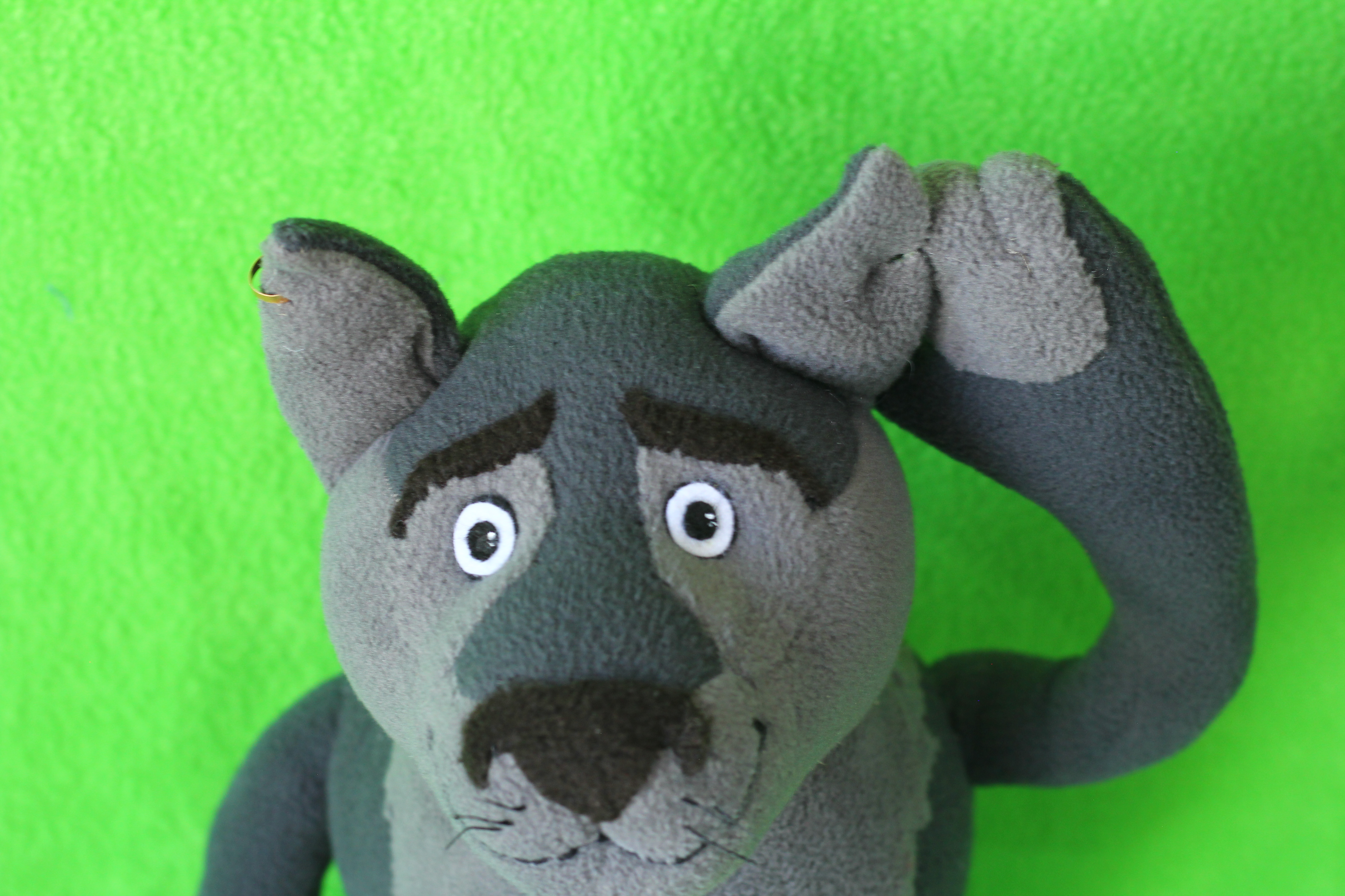 Тамара, как хорошо, что Вы его узнали! Это именно этот Волк) Из этого мультика)). Выкроек в интернете нет вообще волка, то что есть, скорее пёс). Пришлось потрудиться)). Но у него гнуться лапы, можно интересно играть). И он такой приятный… Утяжку мордахи делала, иначе получился серый носатый мишка). Серьгу муж вытачивал латунную, усики -нитку проклеивала мулине… А так все детали на тушку нашивала вручную. Пальцы долго заживали
