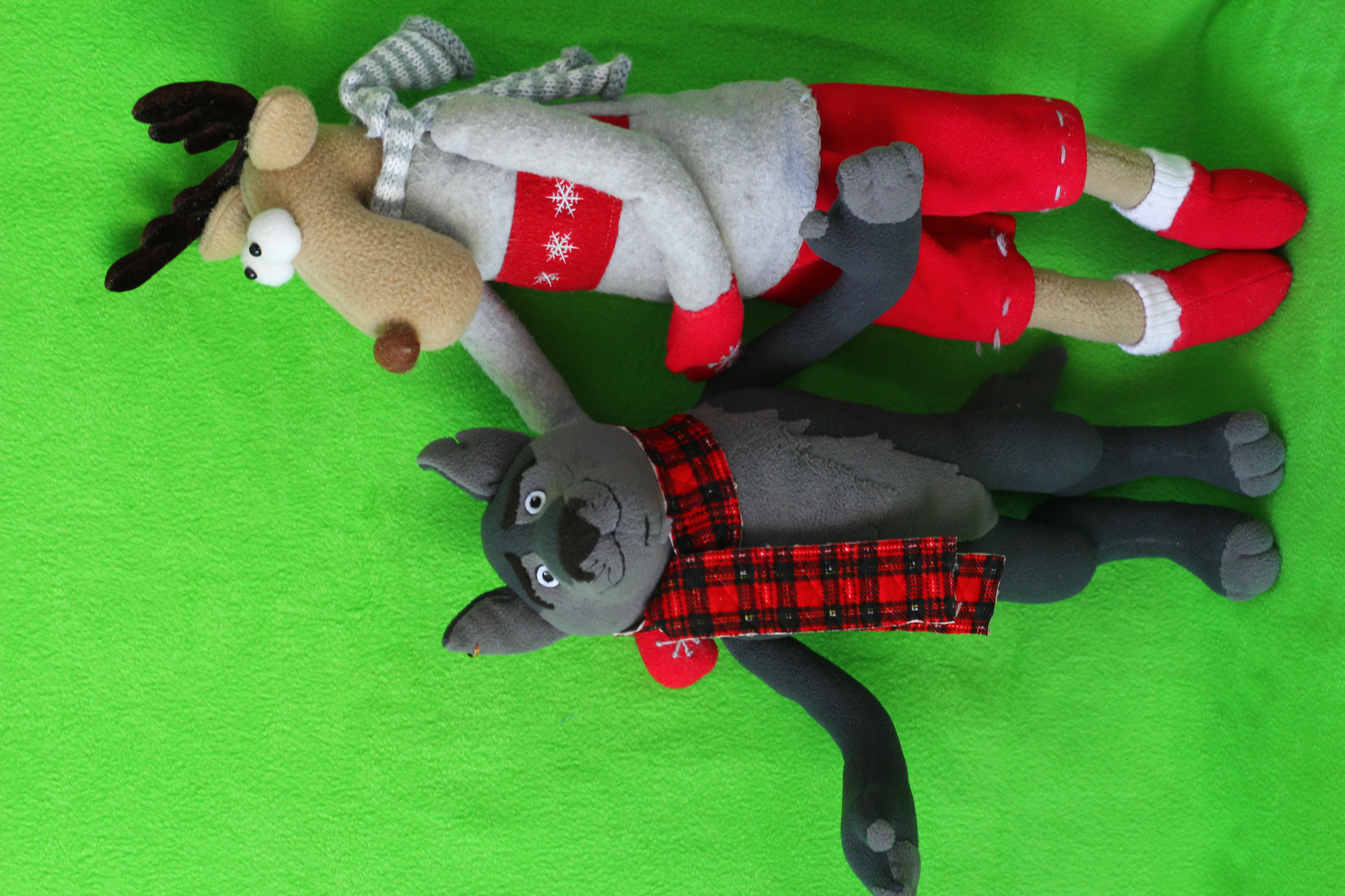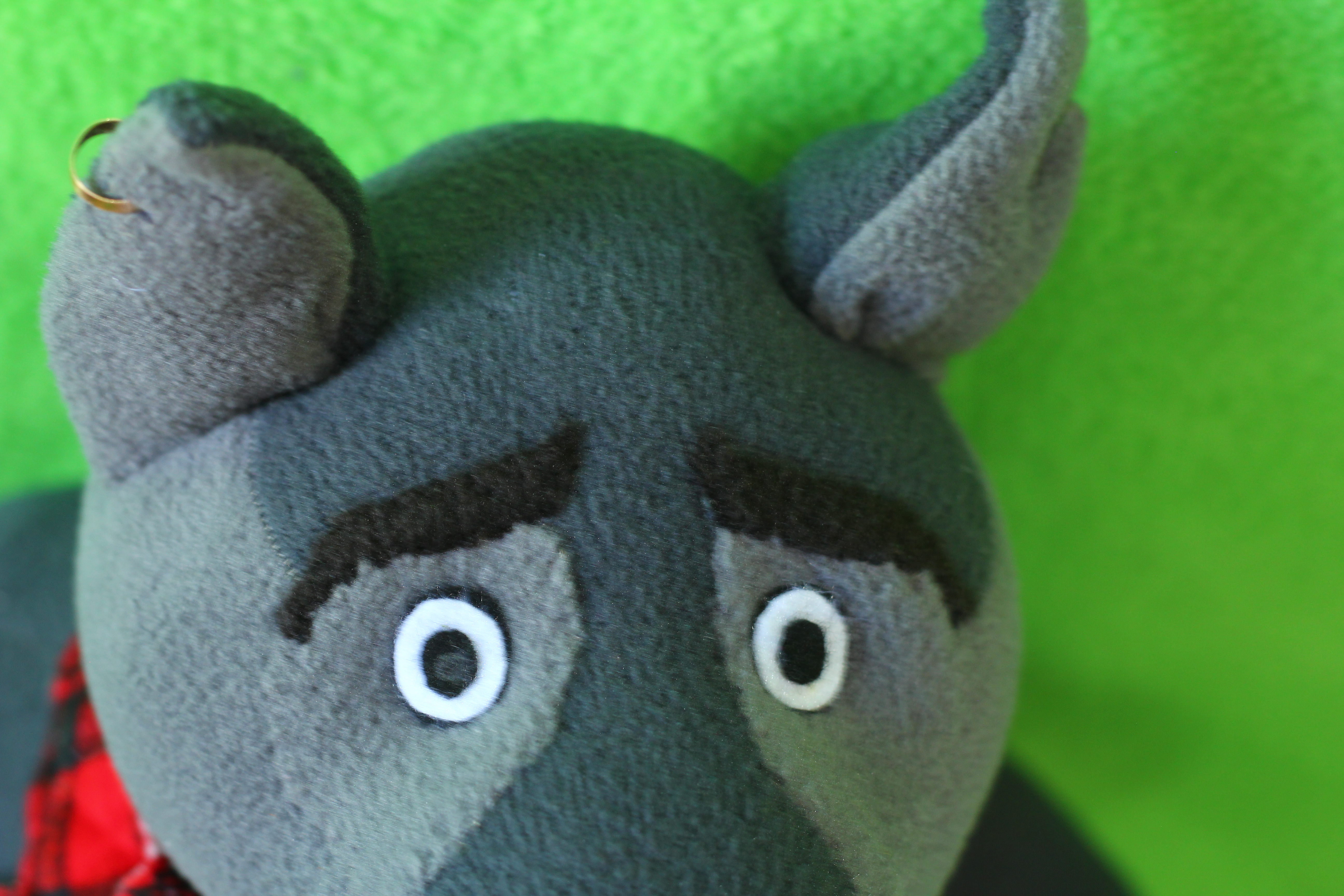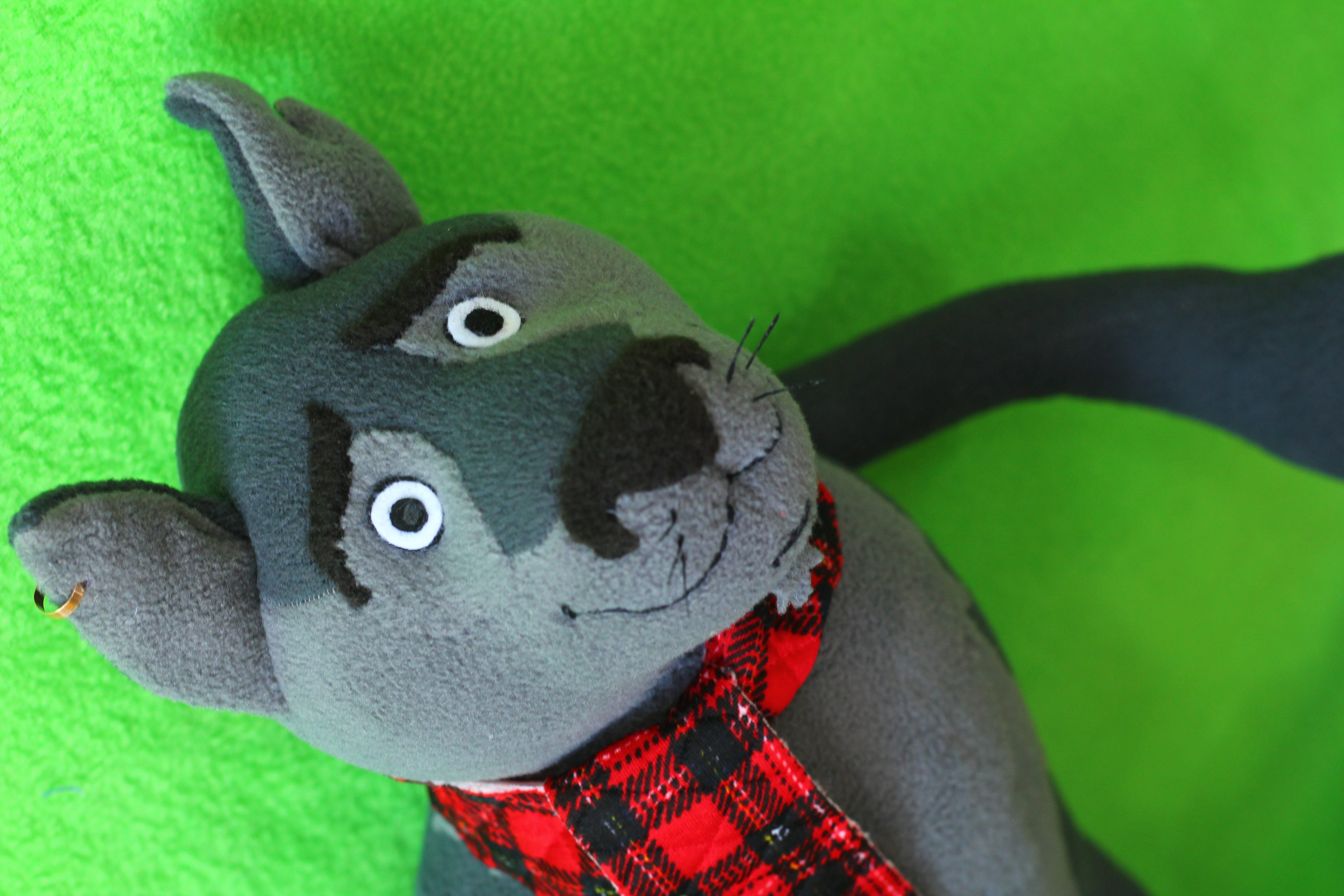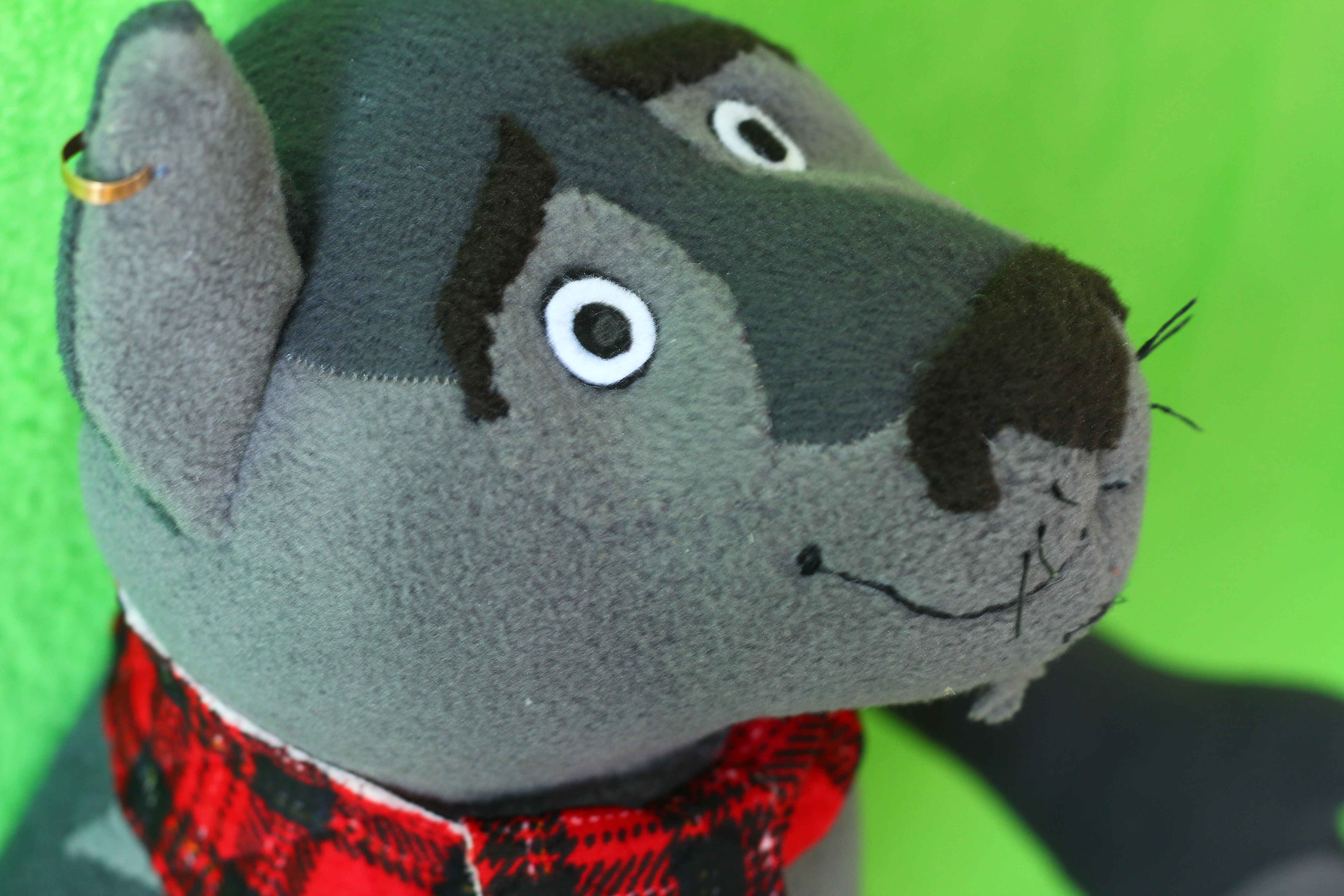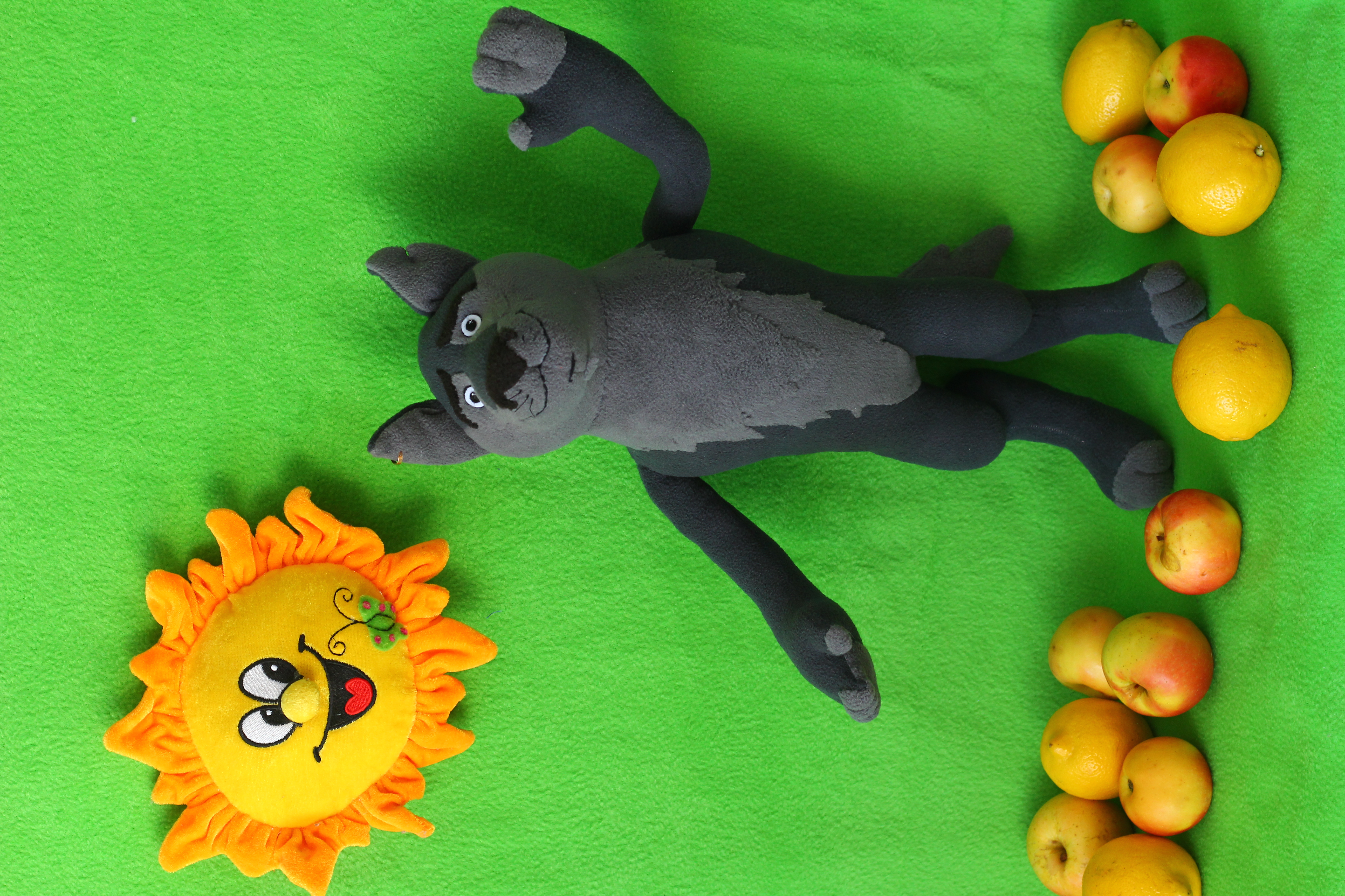Тамара, как хорошо, что Вы его узнали! Это именно этот Волк) Из этого мультика)). Выкроек в интернете нет вообще волка, то что есть, скорее пёс). Пришлось потрудиться)). Но у него гнуться лапы, можно интересно играть). И он такой приятный… Утяжку мордахи делала, иначе получился серый носатый мишка). Серьгу муж вытачивал латунную, усики -нитку проклеивала мулине… А так все детали на тушку нашивала вручную. Пальцы долго заживали