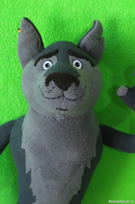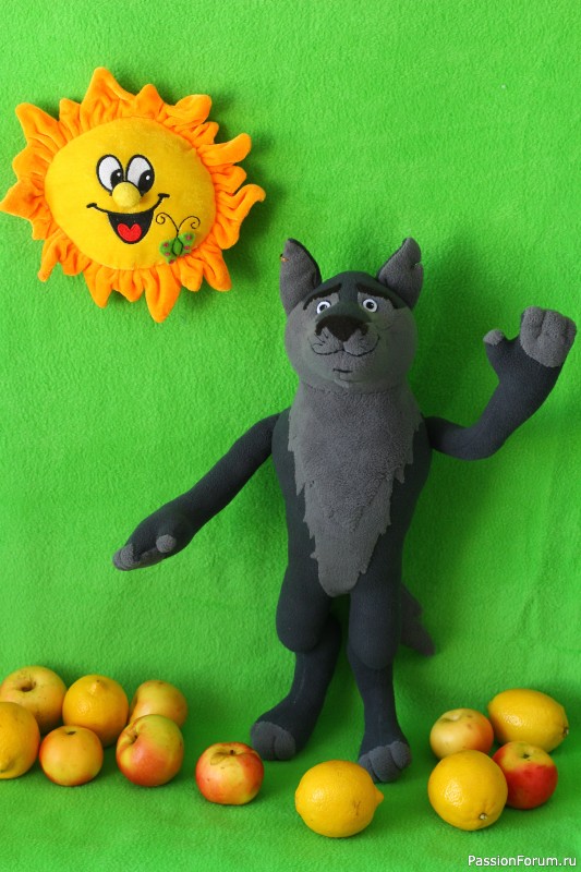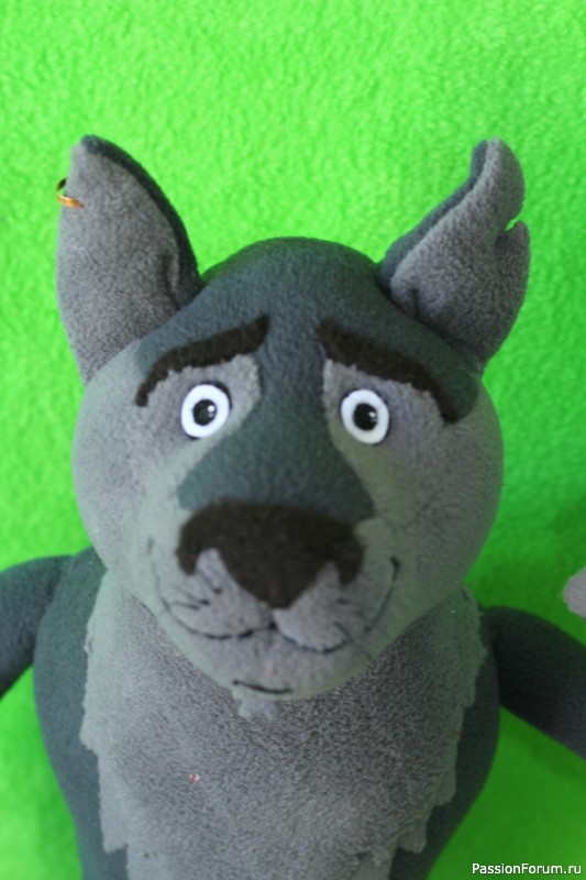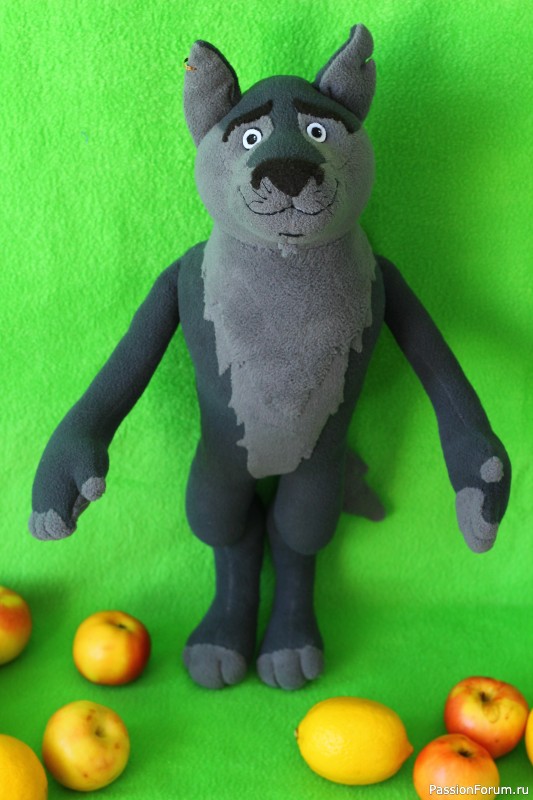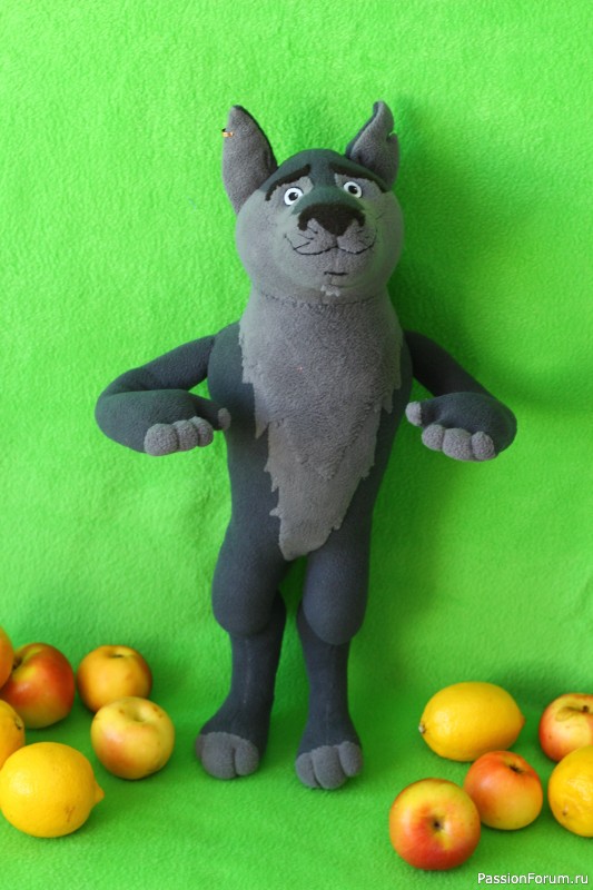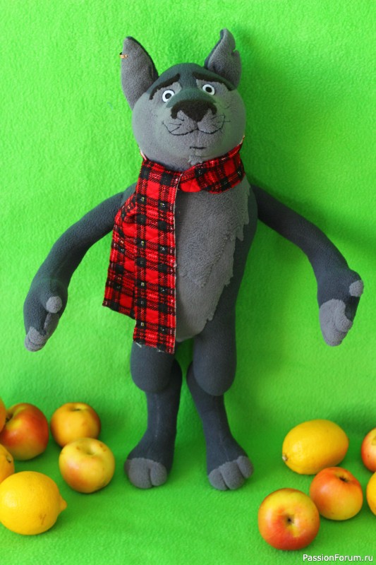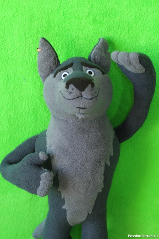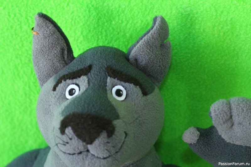 Светлана!!! Волк классный!!! Он похож на волка из мультика" Волк и Пес"… Сейчас спою… Добрый.милый.И как все проработали до мелочей.Это же уже не первая игрушка, которую сшили по своей выкройке.Восторг!!! Все умеете… и сшить, и сотворить!!!