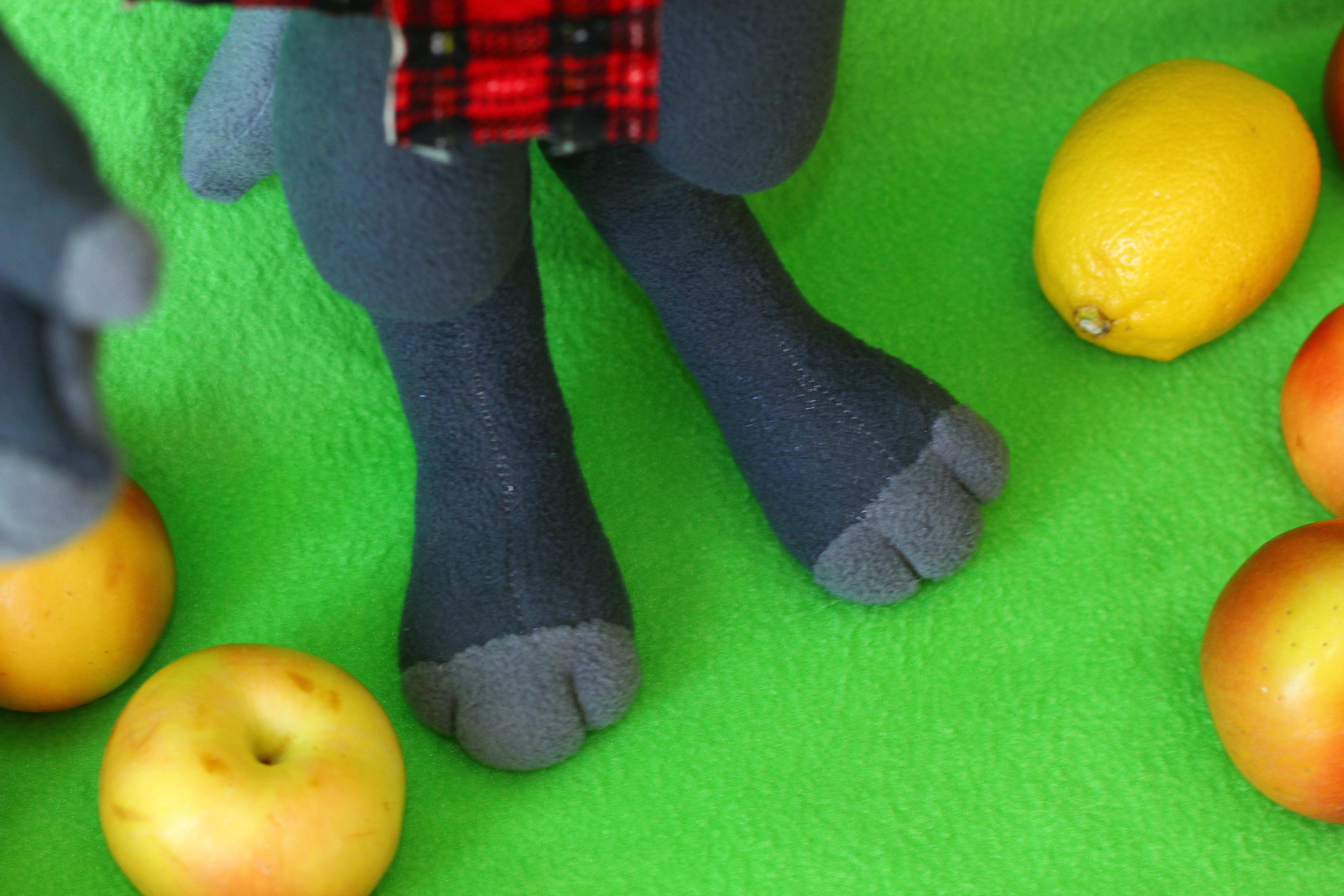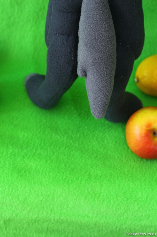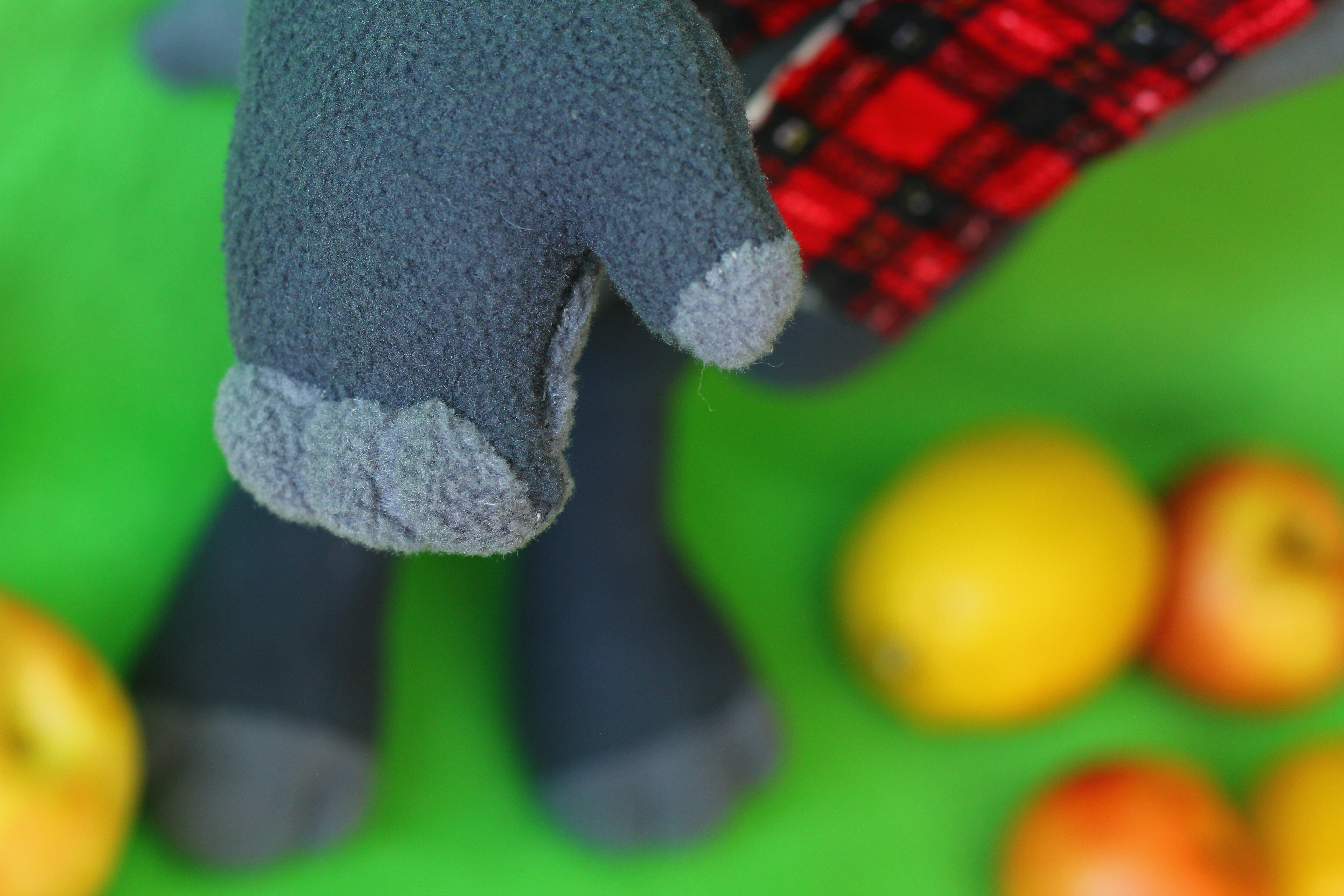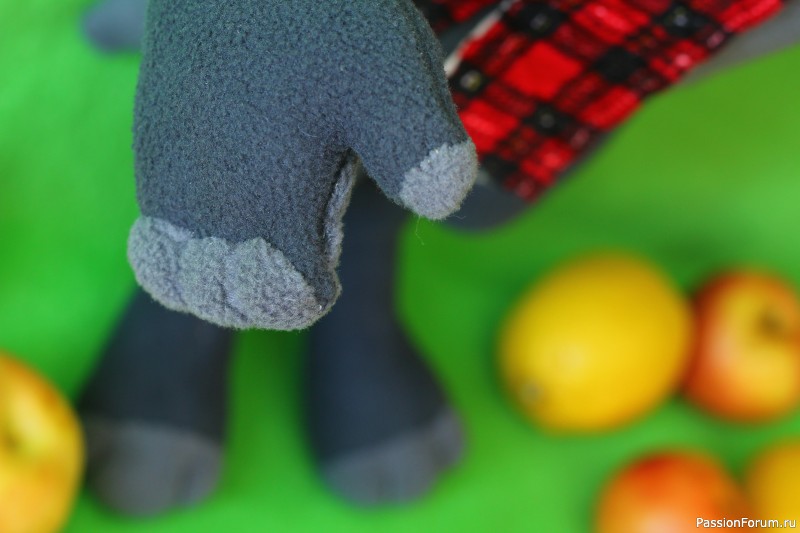 Галина, ноги- это результат нескольких бессонных ночей и испорченный флис, пока я сделала как планировала).Тело до колен отдельно, голова отдельно и ноги ниже колен отдельно! Оставляла отверстие в нижней части лап, в том месте, где собиралась пришивать, пришивала большой длинной и прочной иглой, и прочной нитью в несколько сложений… А мордаху уже утяжками..