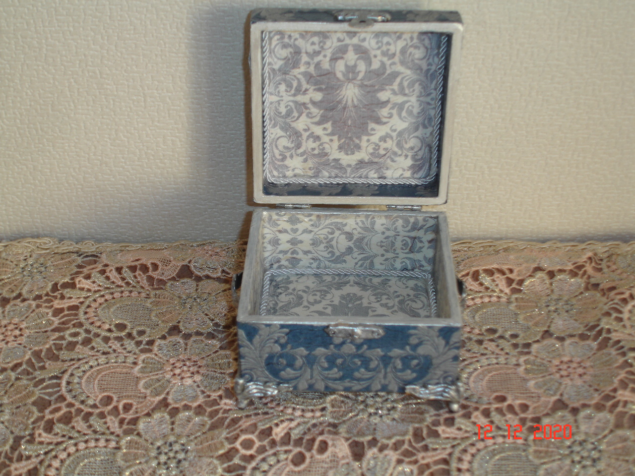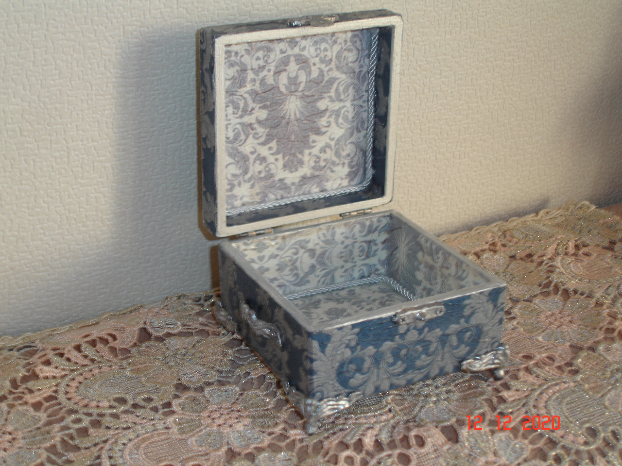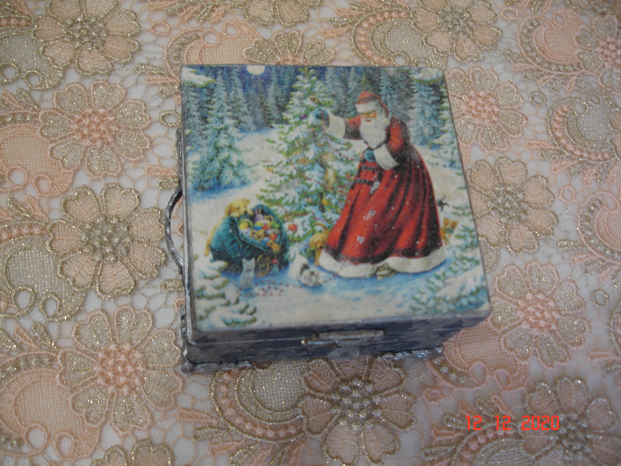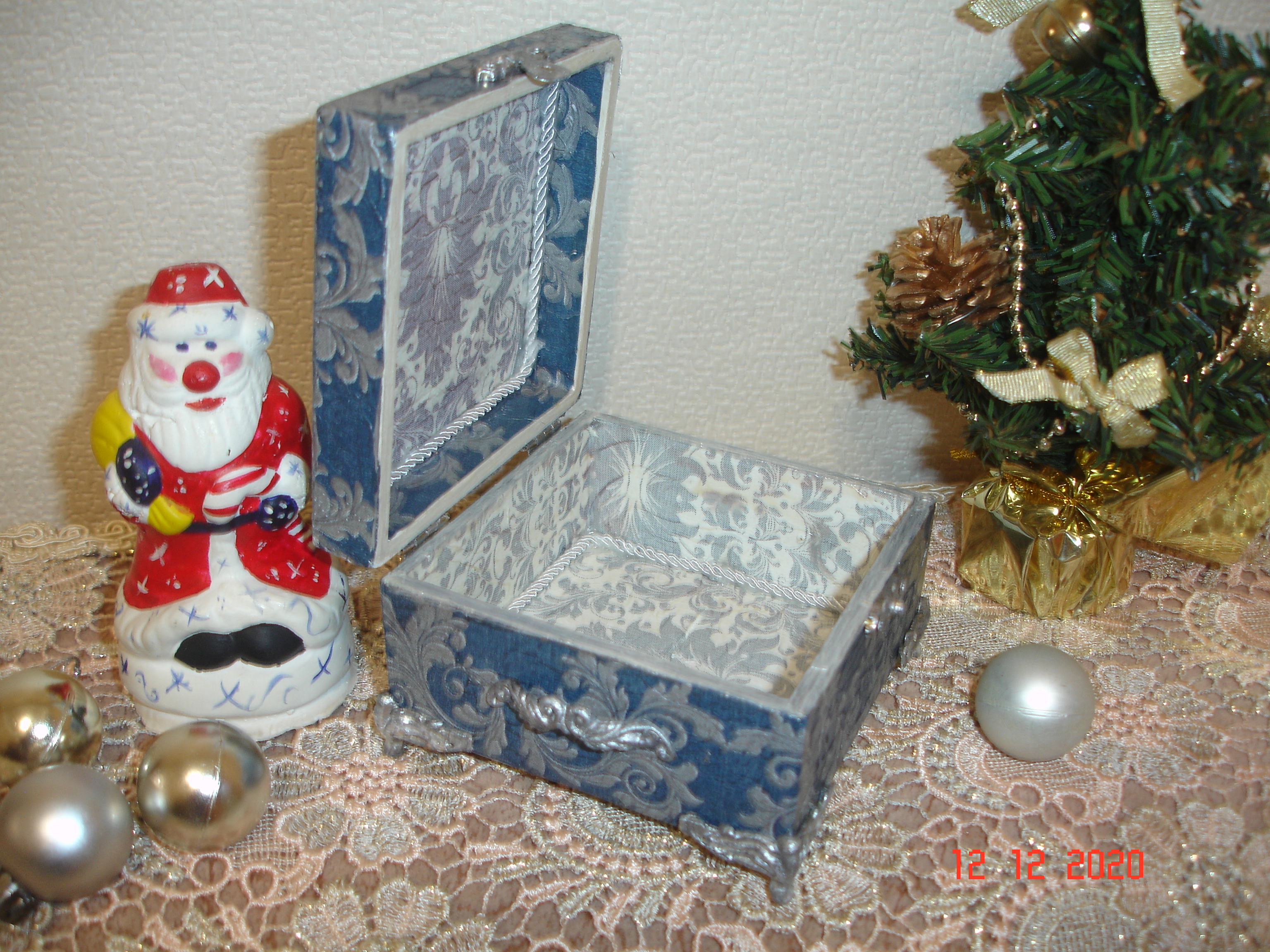 И Дедушка Мороз и узоры морозные — серебристо- голубые-все сошлось. Хорошая шкатулка.