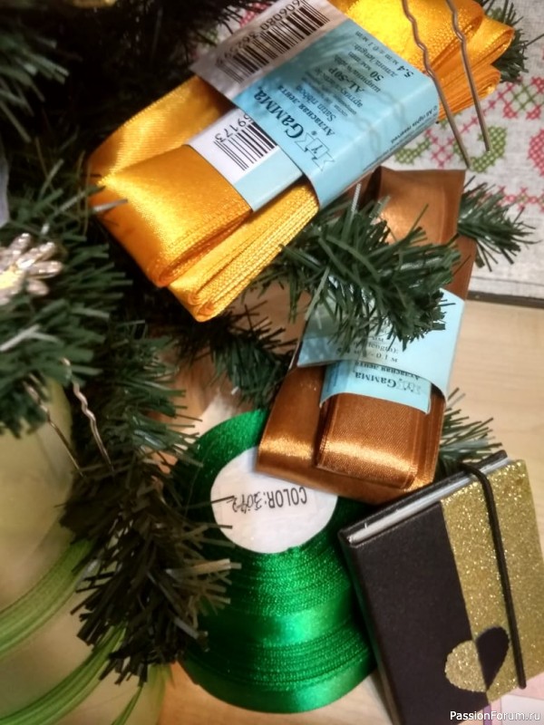 Принесла посылку домой. И пока собиралась сфотографировать ее содержание в посылочной коробке, мой любопытный муж уже всё это содержимое из неё вытащил.... Но зато подсказал, как правильно сфотографировать подарки - украсить ими ёлку!